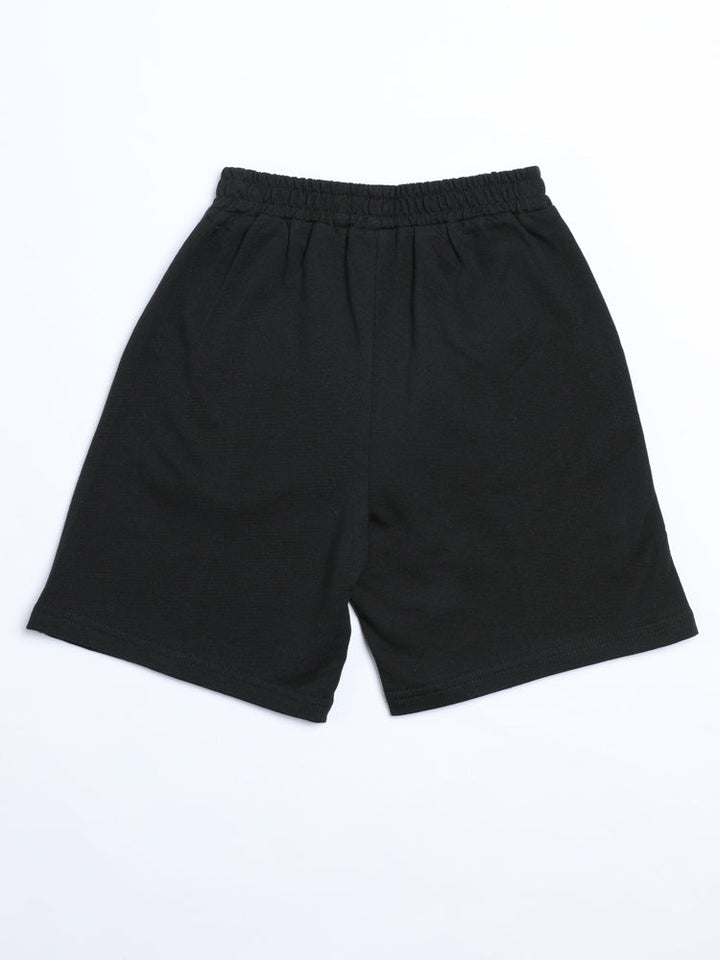 شورت بسيط للأطفال بخصر مطاطي وجيوب جانبية، مع إضافة رقعة صغيرة للتفاصيل. قطعة عملية ومتعددة الاستخدامات.