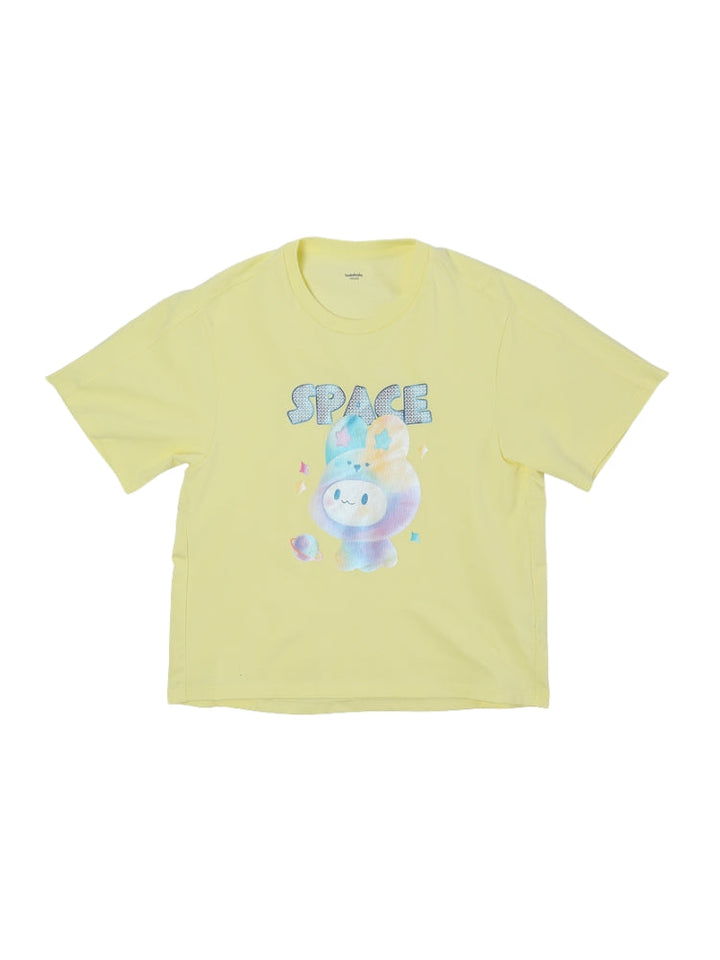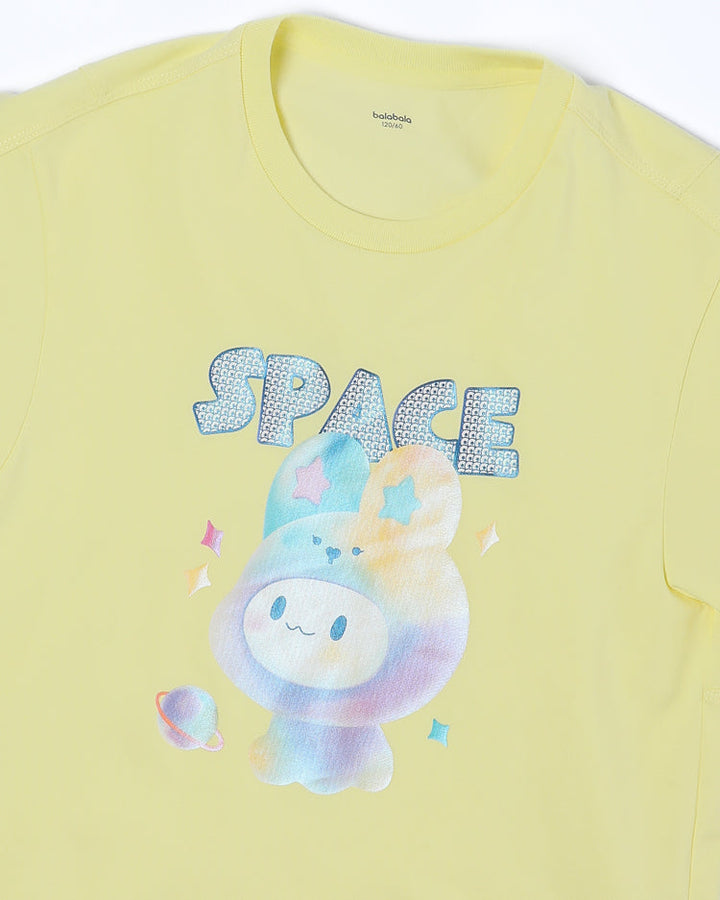 تيشيرت أطفال بتصميم مطبوع بلمسة فضائية مرحة تضيف طابعاً خيالياً. خفيف ومناسب للارتداء طوال اليوم.