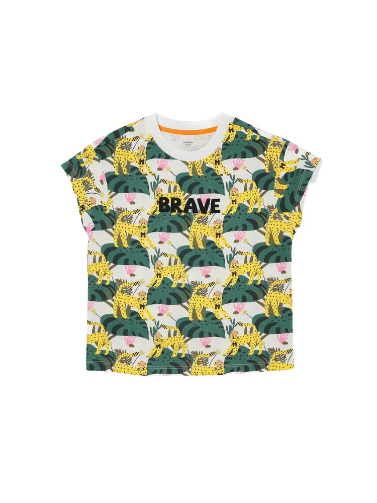 تيشيرت عملي للأطفال مزين بطبعة رسومية جريئة تضيف طابعاً عصرياً. مريح ومثالي للاستخدام اليومي.