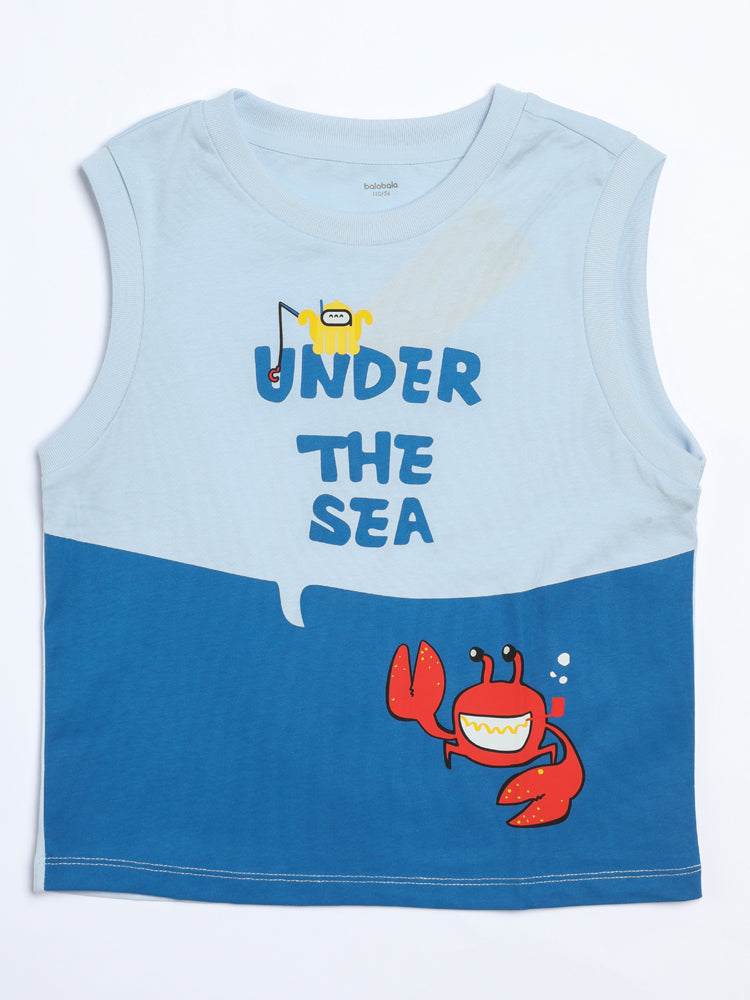 تيشيرت بدون أكمام مزين بطبعة أمامية للأولاد