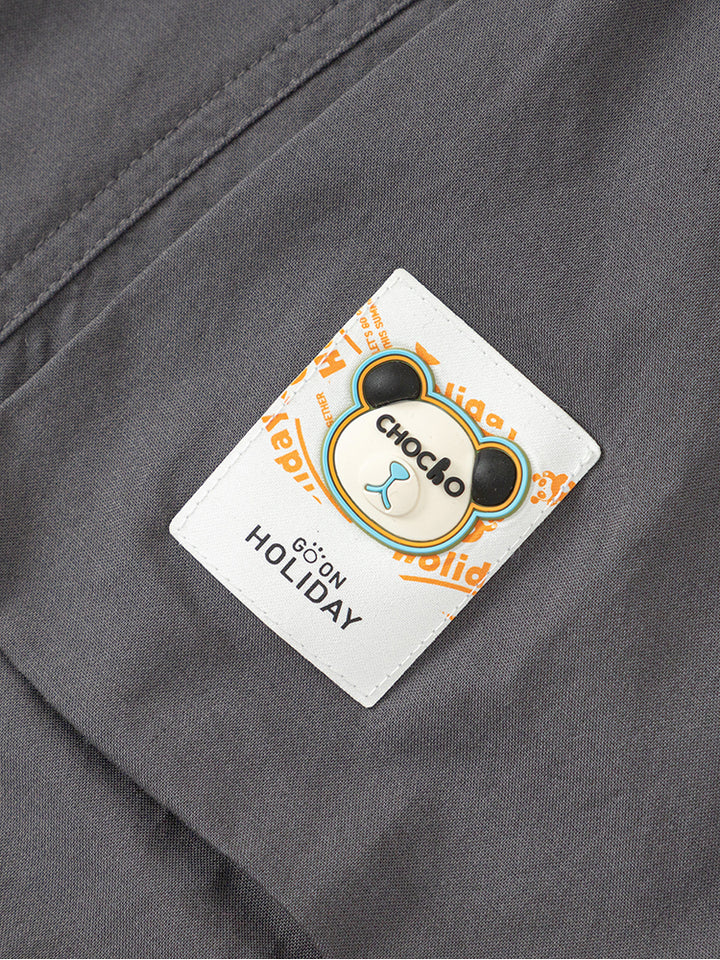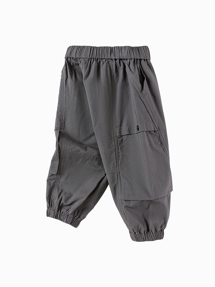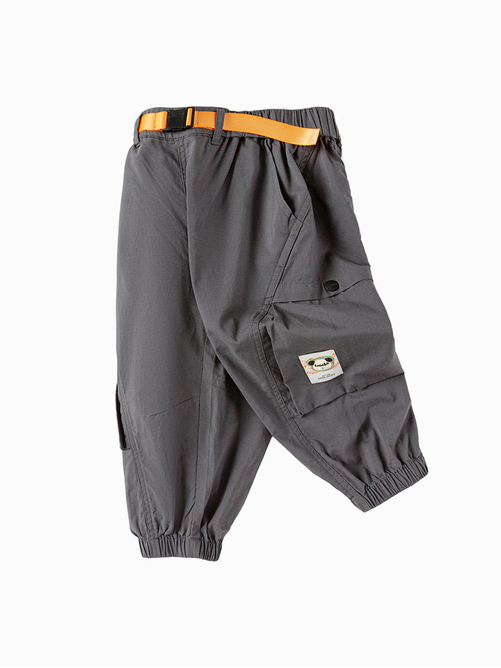 بنطلون ولادي كاجوال مزين برقعة من الجهة الأمامية، يأتي بجيوب من الجهة الأمامية وعلى جانب الساقين، خصر مطاطي مرن ومريح وحزام إبزيم قابل للتعديل على الخصر
