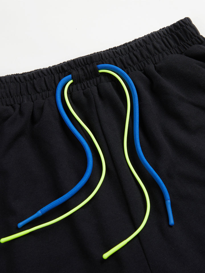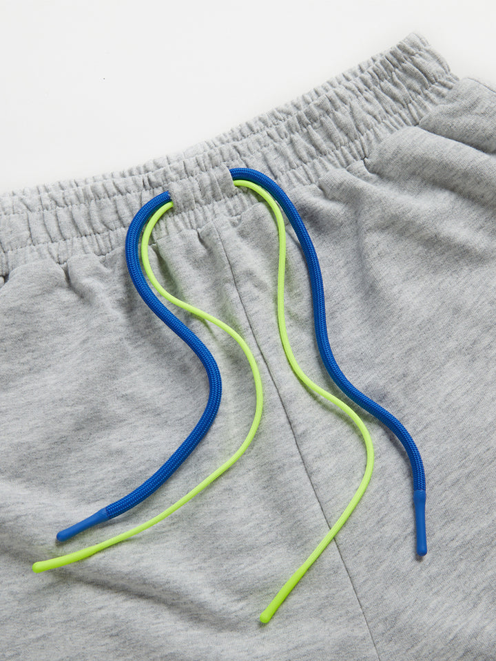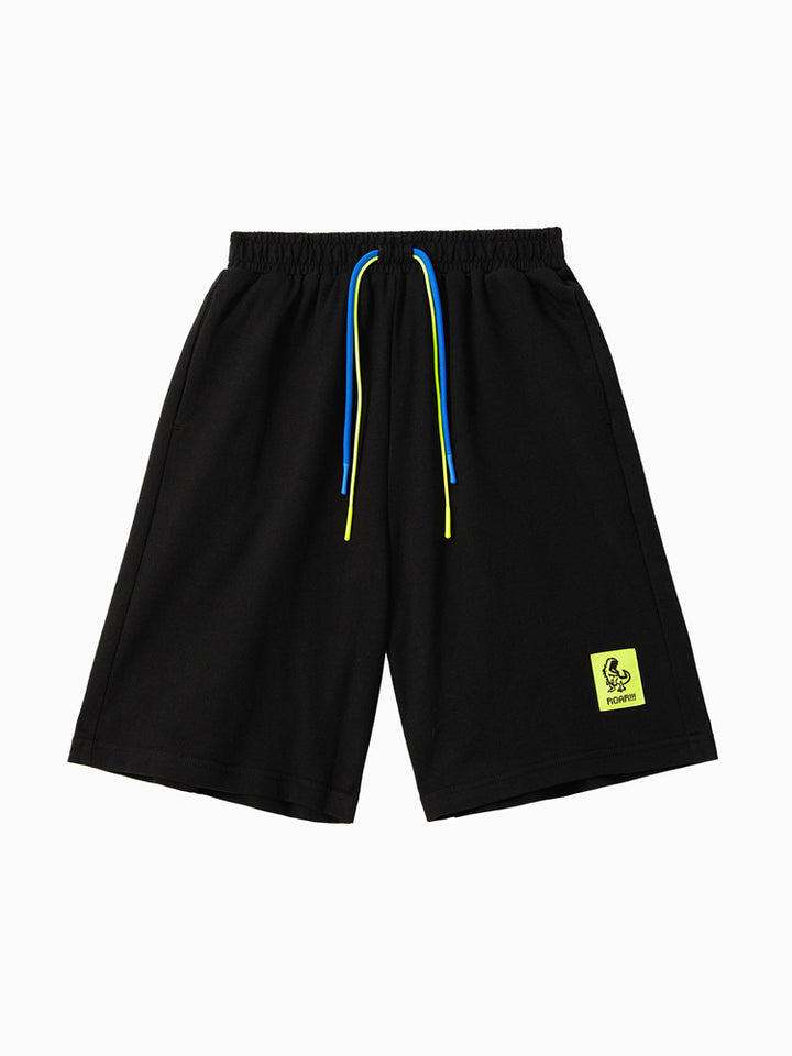 شورت رياضي كاجوال، مزين برقعة صغيرة على أحد الساقين من الجهة الأمامية، يأتي بجيوب من الجهة الأمامية، خصر مطاطي مرن ومريح ورباط ملون قابل للتعديل على الخصر