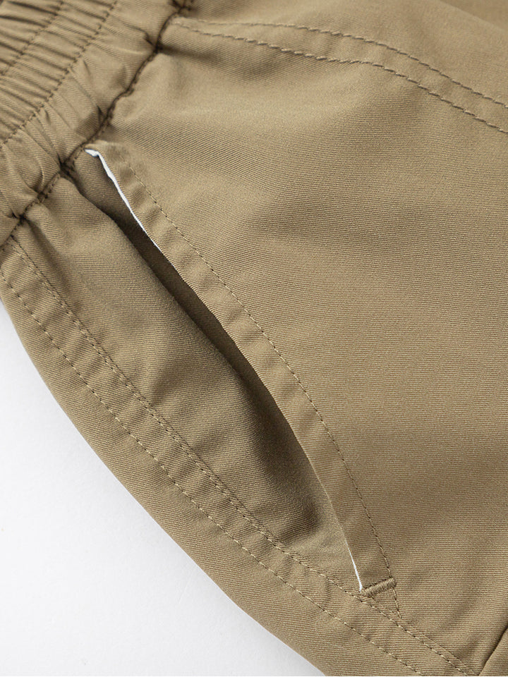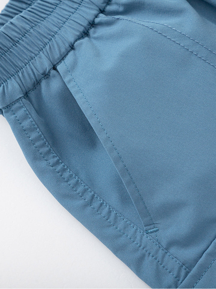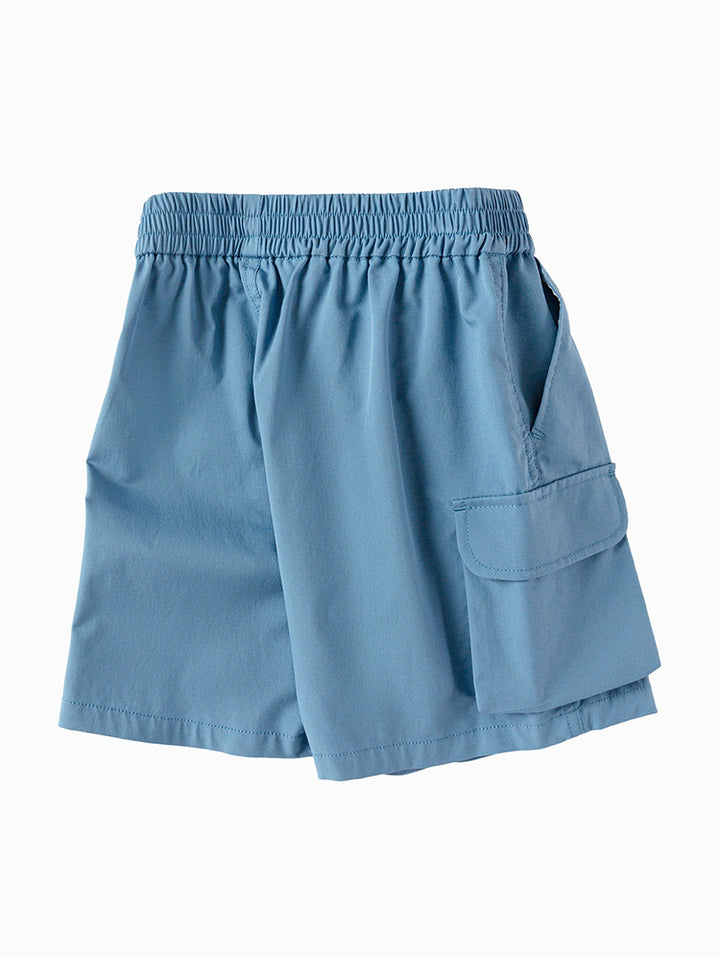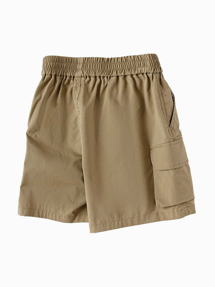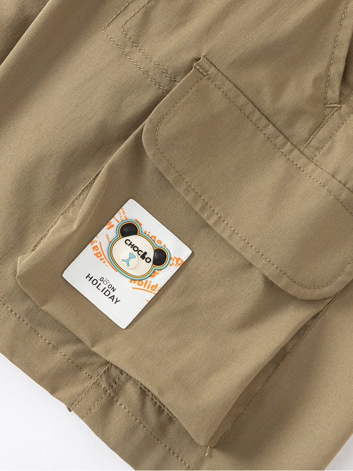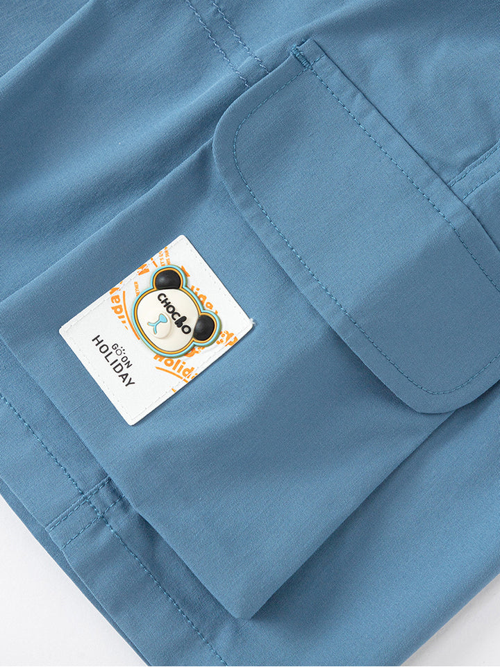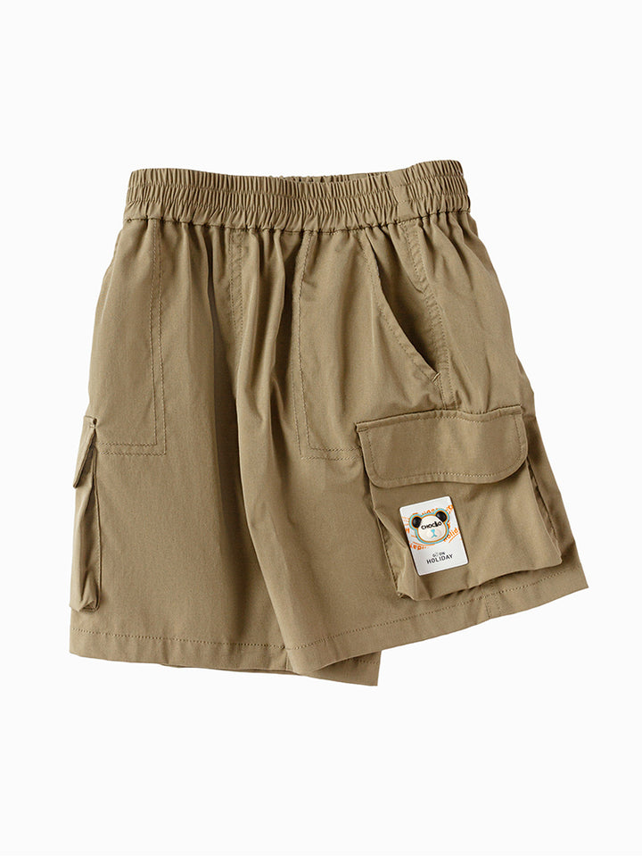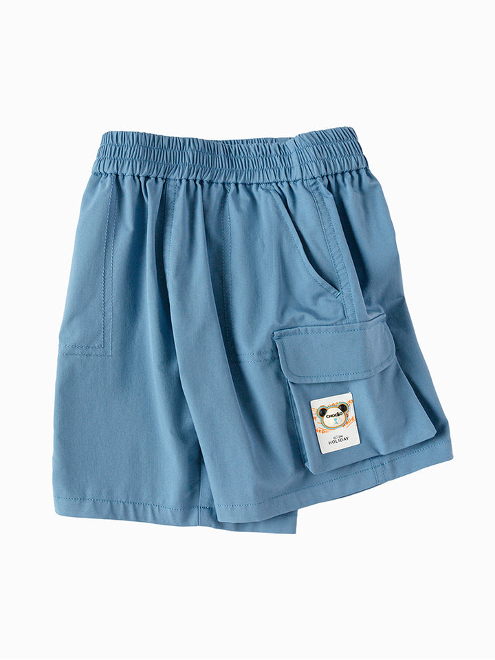 شورت ولادي كاجوال مزين برقعة من الجهة الأمامية، يأتي بجيوب من الجهة الأمامية، جيوب قلاب على جانب الساقين وبخصر مطاطي مرن ومريح