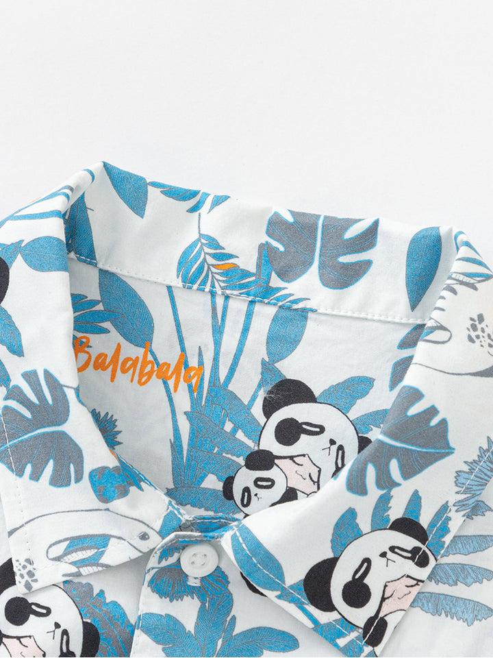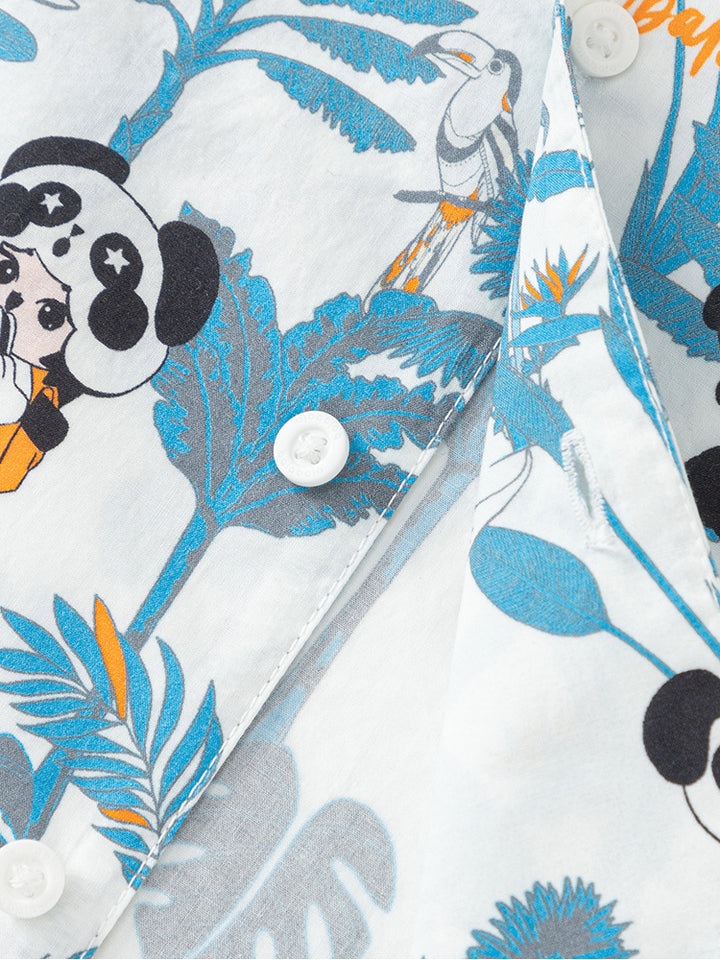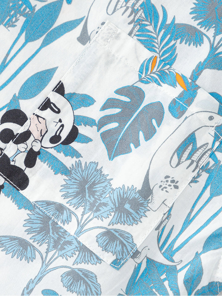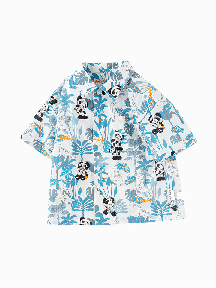 قميص ولادي كاجوال بأكمام قصيرة، مزين بنمط طبعات ملونة على كامل التصميم، يأتي بجيب من الجهة الأمامية، أزرار للإغلاق من الجهة الأمامية وبياقة كلاسيكية عادية