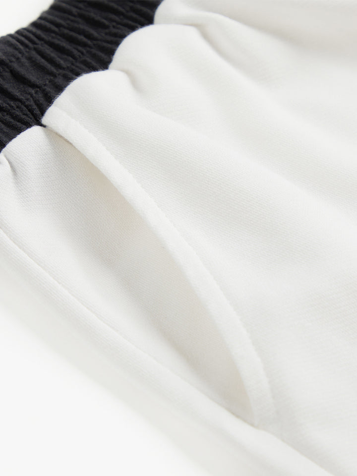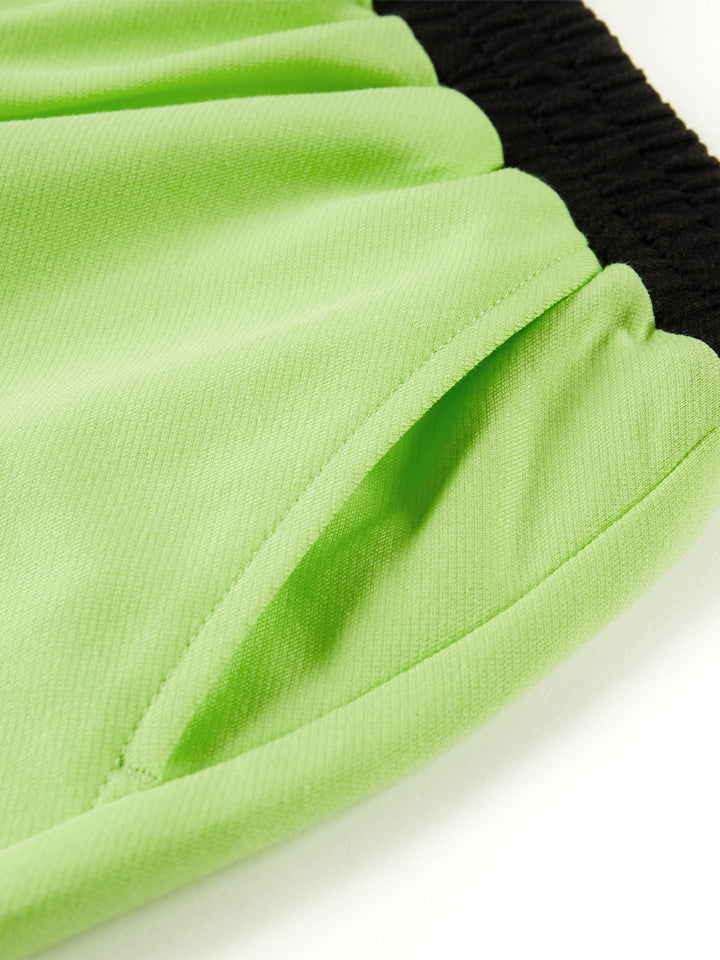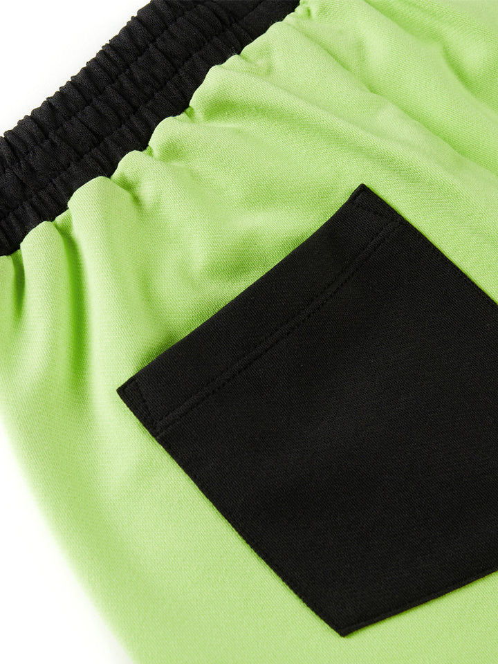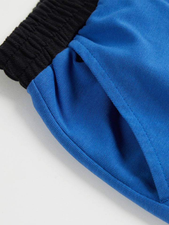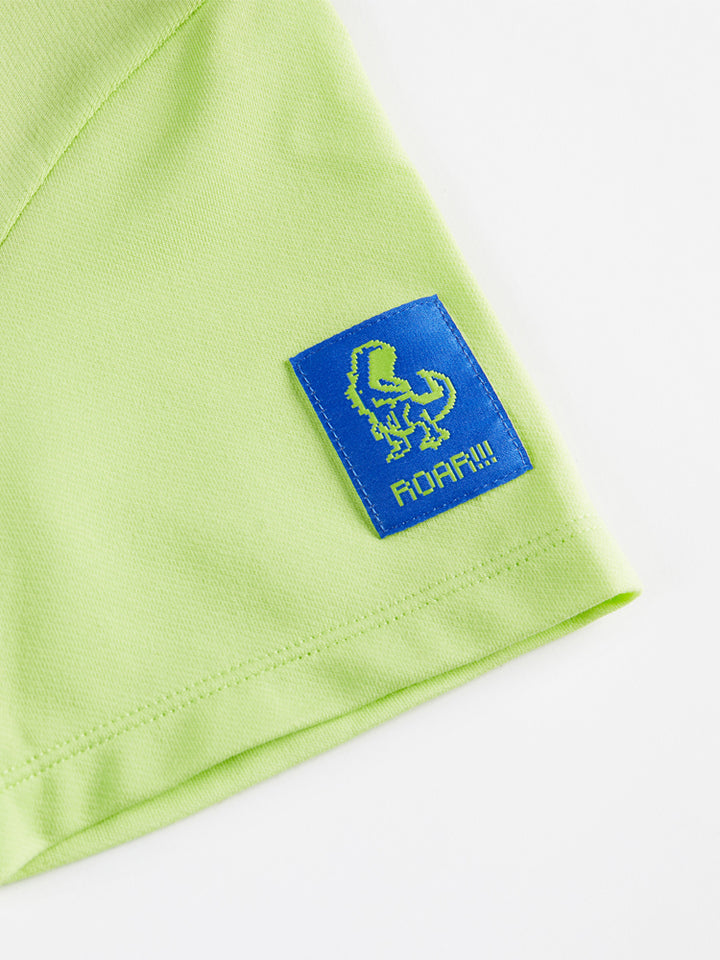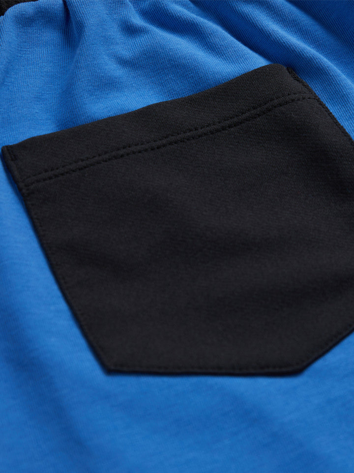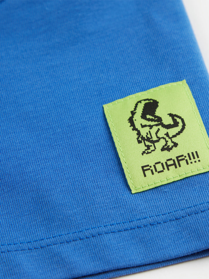 طقم ولادي مكون من قطعتين، تيشيرت كاجوال بأكمام قصيرة، مزين بتفاصيل متباينة اللون وطبعة كتابة بارزة من نفس اللون من الجهة الأمامية وتأتي بياقة مدورة الشكل، وشورت كاجوال مزين بتفاصيل متباينة اللون، يأتي بجيوب من الجهة الأمامية وجيب واحد من الجهة الخلفية، خصر مطاطي مرن ومريح ورباط قابل للتعديل على الخصر