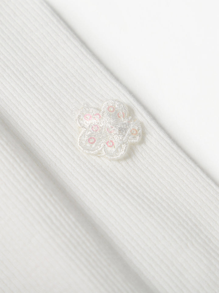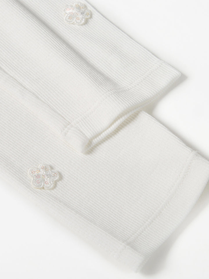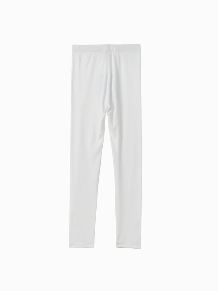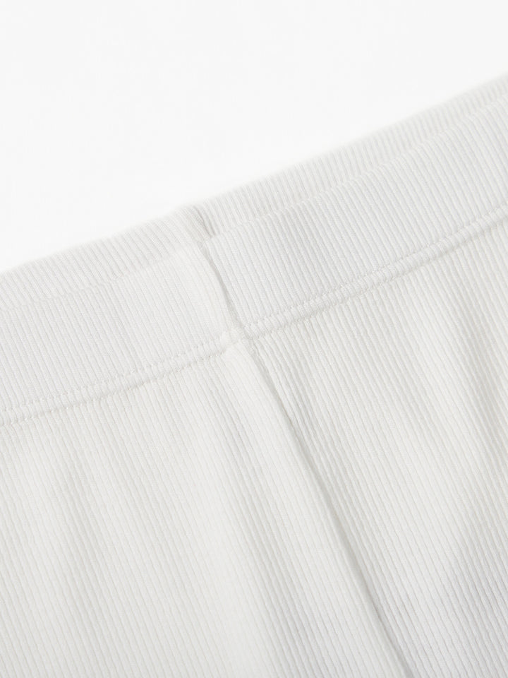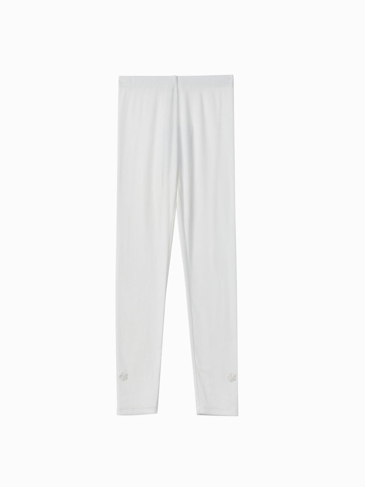 بنطلون ليقنز كاجوال بلون موحد وبخامة قابلة للتمدد مزينة بتقشة مضلعة وتفاصيل زينة موردة أسفل الساقين، يأتي بخصر مطاطي مرن ومريح