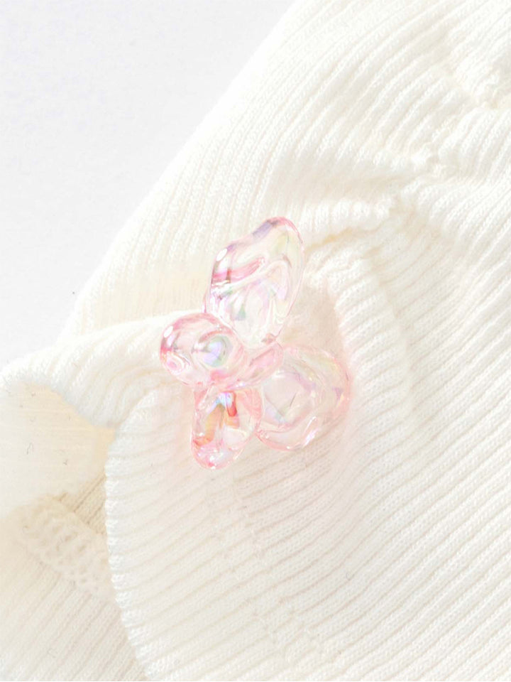 بنطلون ليقنز بناتي كاجوال بنمط ذو لون موحد سادة، يأتي بخامة قابلة للتمدد تأخذ شكل الجسم، مزين بخامة منقوشة وتفاصيل زينة على شكل فراشة أسفل الساقين، ويأتي بخصر مطاطي مريح