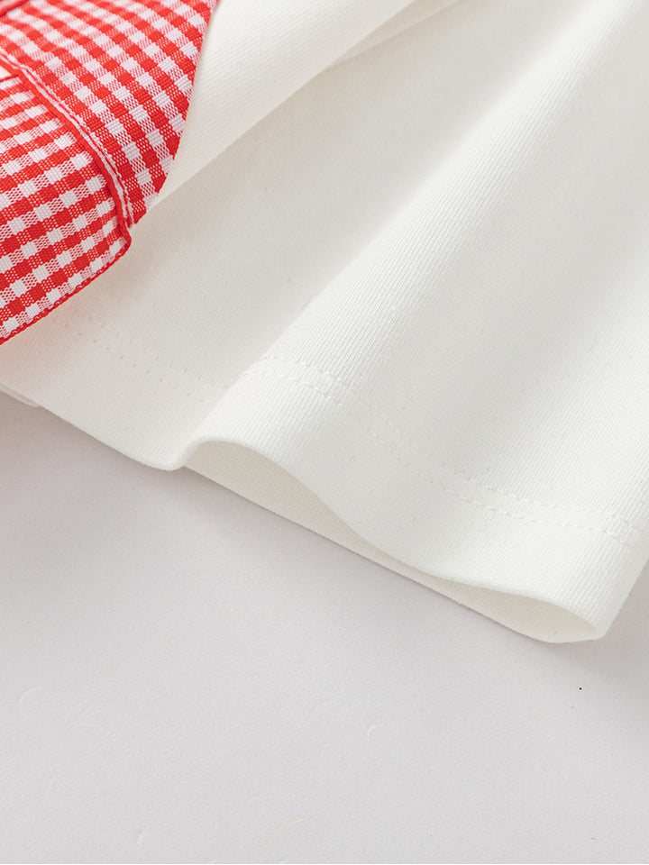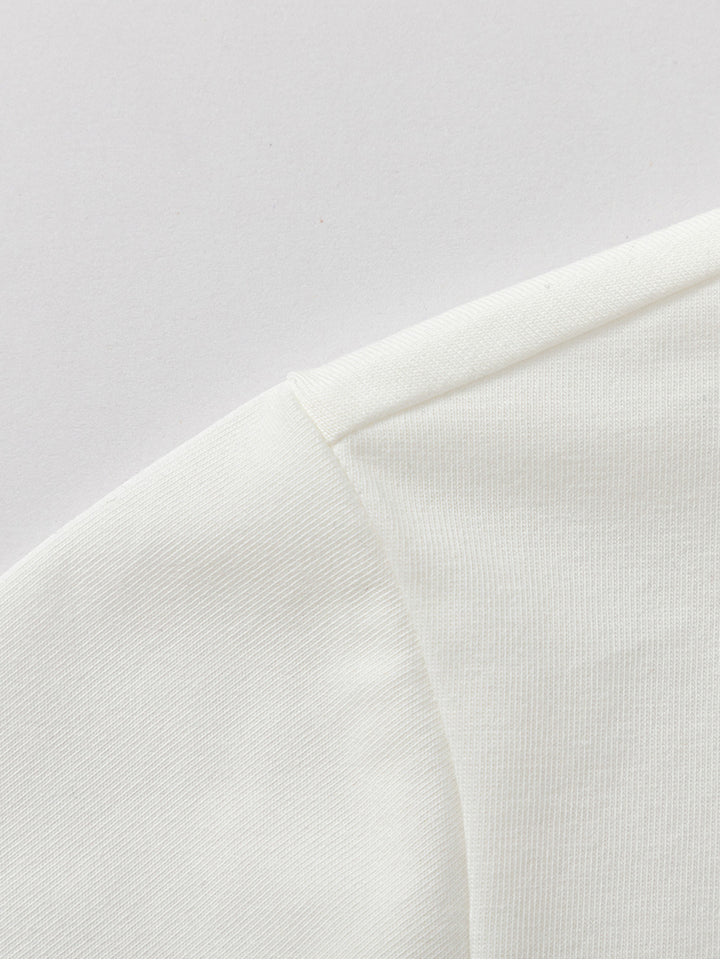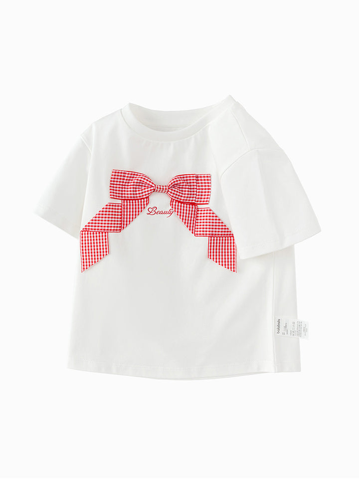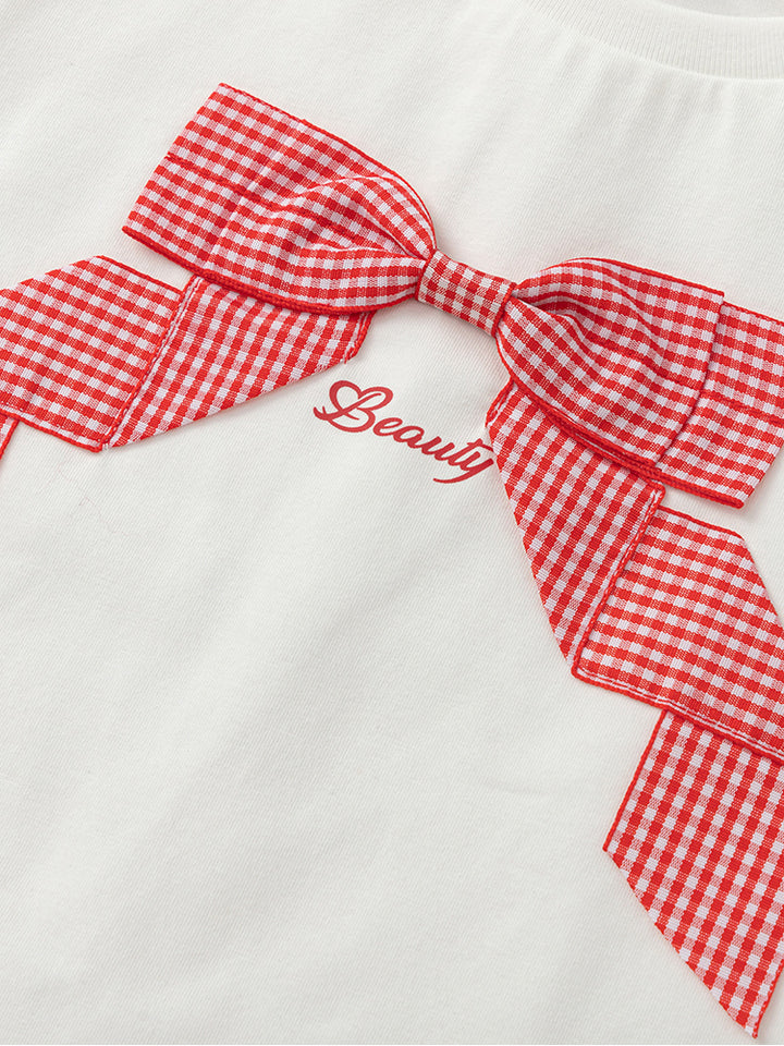 تيشيرت كاجوال بأكمام قصيرة، مزينة بتفاصيل ربطة ببيونة من الجهة الأمامية، يأتي بياقة مدورة الشكل