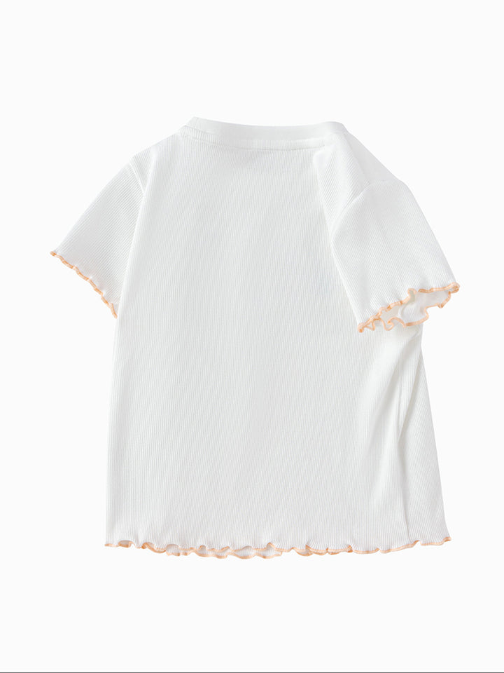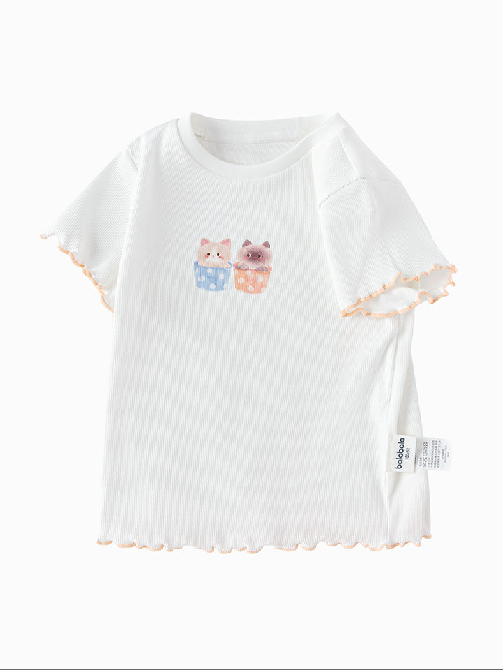 تيشيرت أنيق للأطفال الصغار مزود بطباعة مميزة على الجهة الأمامية وياقة مدورة. مع الأكمام القصيرة، يوفر راحة وأناقة مثالية طوال اليوم