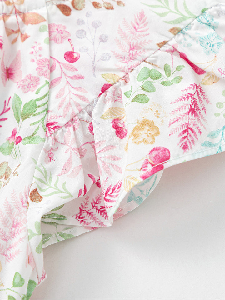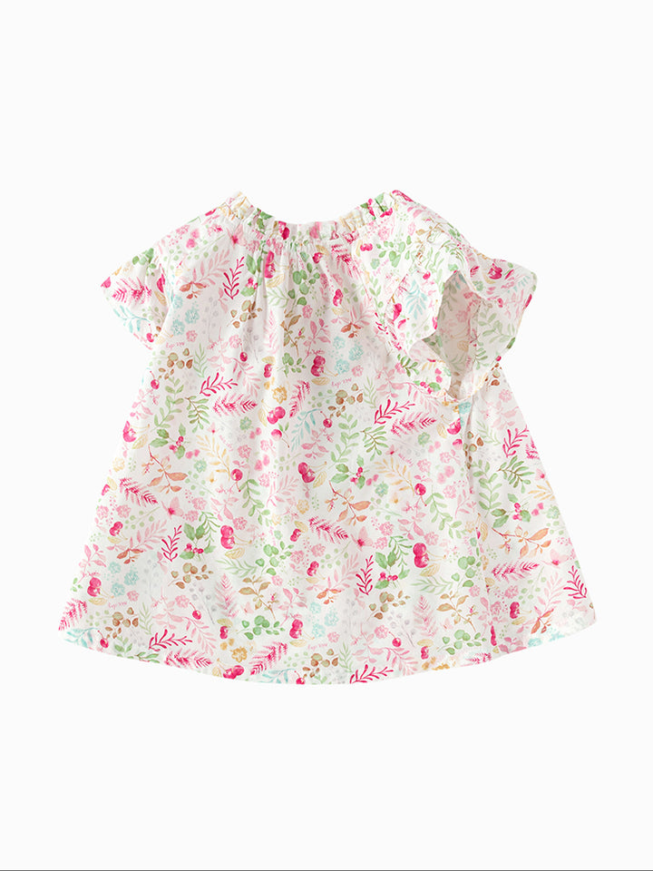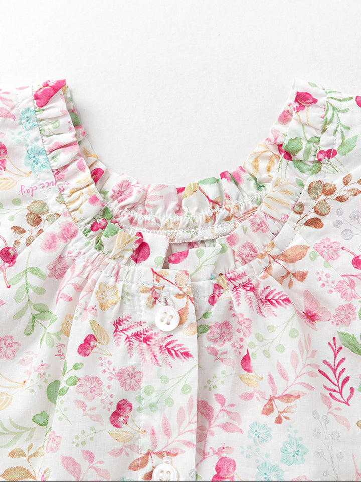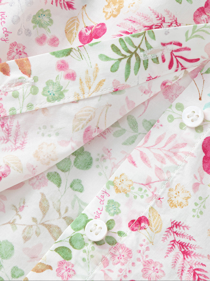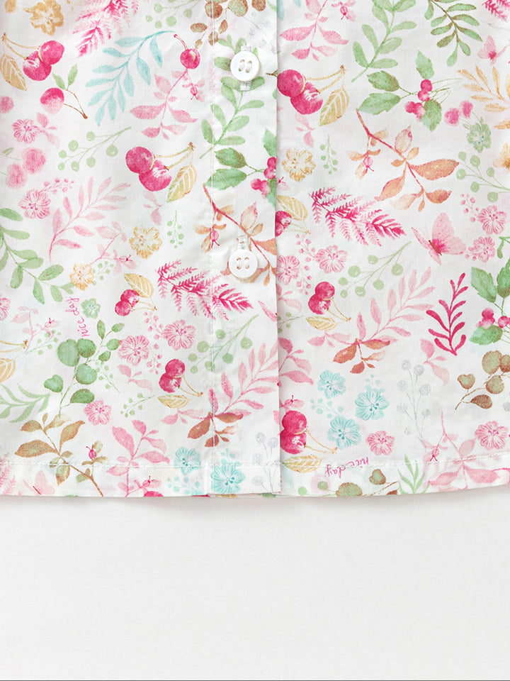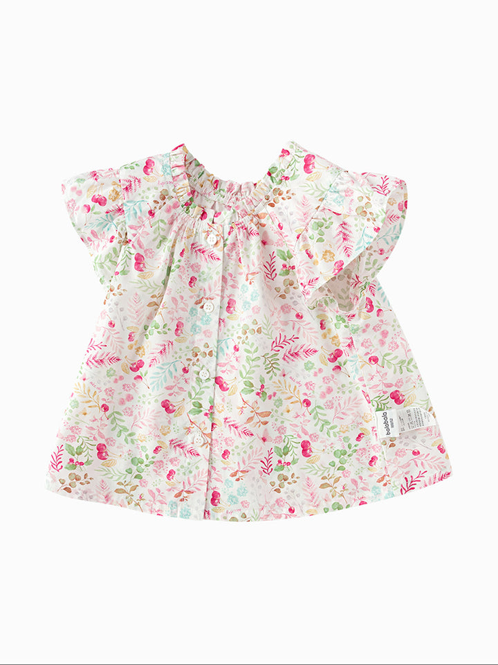قميص أنيق للأطفال الصغار مزود بأكمام مكشوفة، وطباعة كاملة، وياقة مدورة مزخرفة لإطلالة جميلة وعصرية. مع أزرار إغلاق أمامية، فهو سهل الارتداء ومثالي لخزانة ملابس طفلك