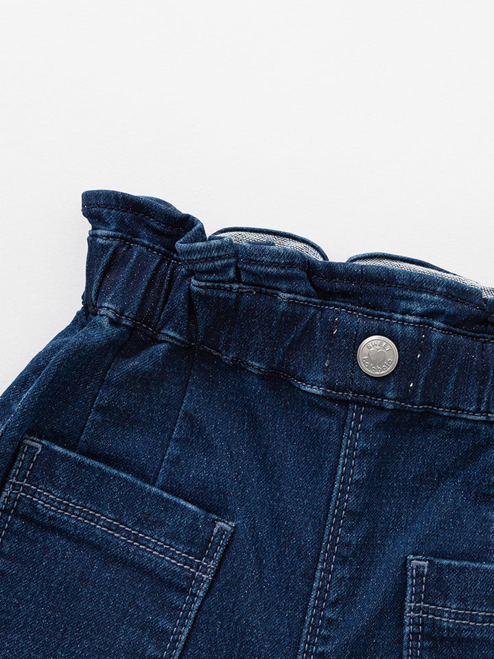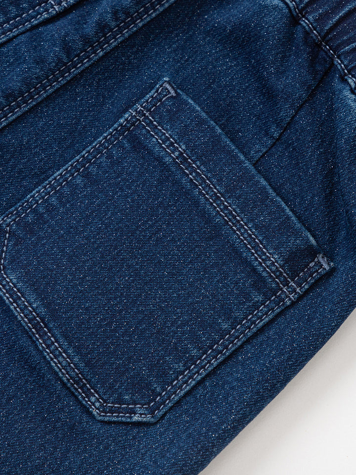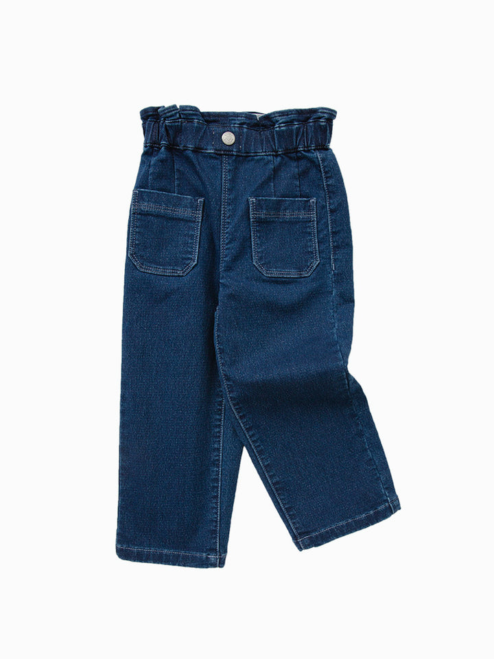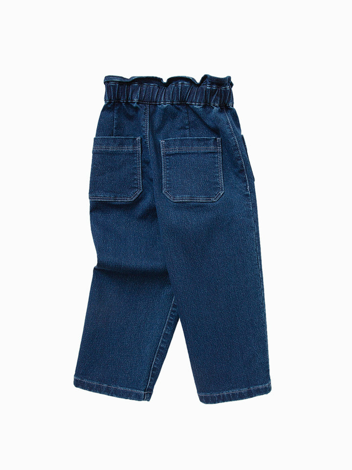 بنطلون جينز بناتي بنمط ذو لون موحد، يأتي بجيوب من الجهتين الأمامية والخلفية وبخصر مطاطي مريح