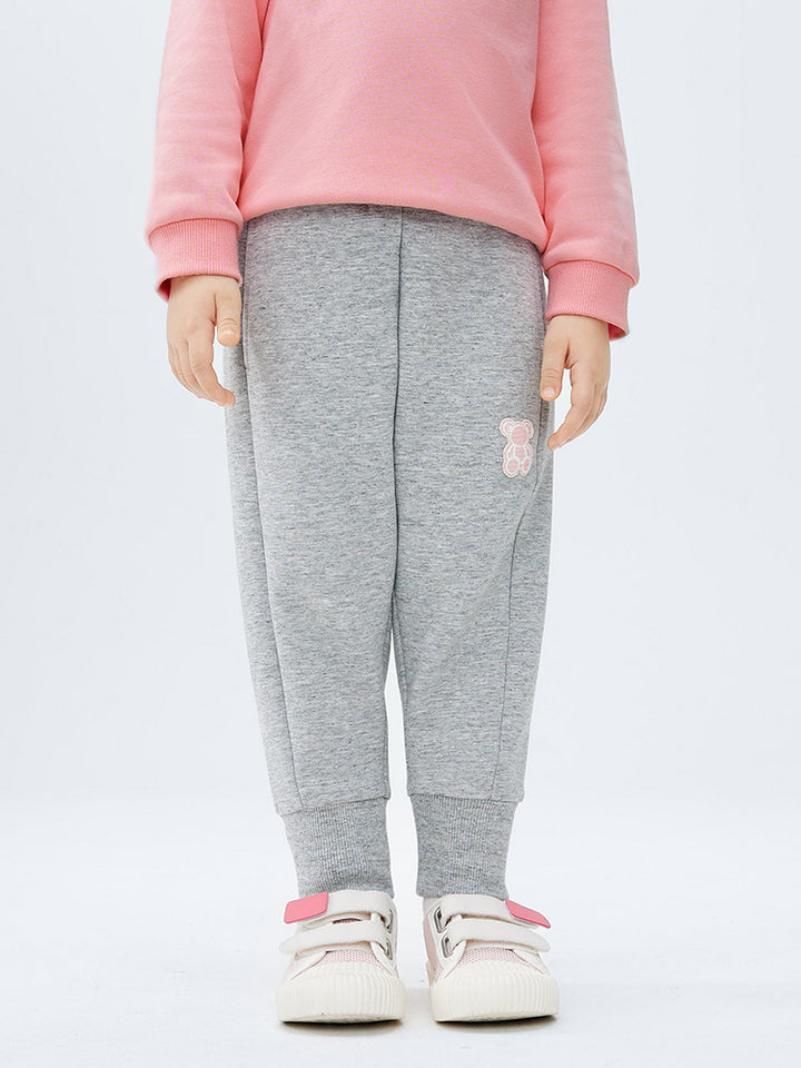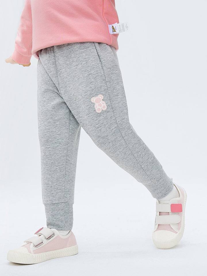 بنطلون رياضي بناتي، مزين برقعة صغيرة من الجهة الأمامية، يأتي بجيوب أمامية وبخصر مطاطي مريح