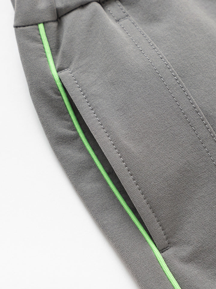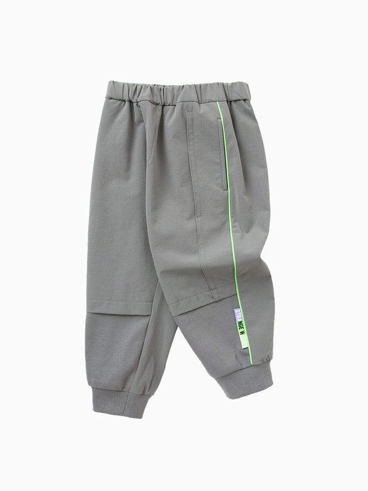 بنطلون ولادي كاجوال مزين بتفاصيل خطوط رفيعة على جانب الساقين، يأتي بجيوب من الجهة الأمامية وبخصر مطاطي مريح