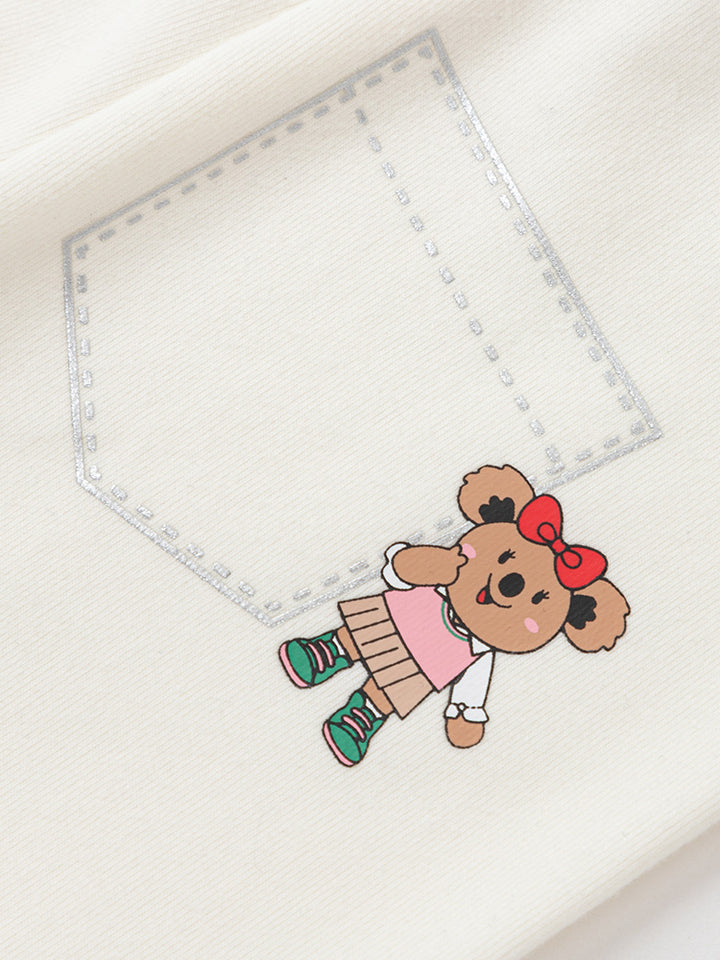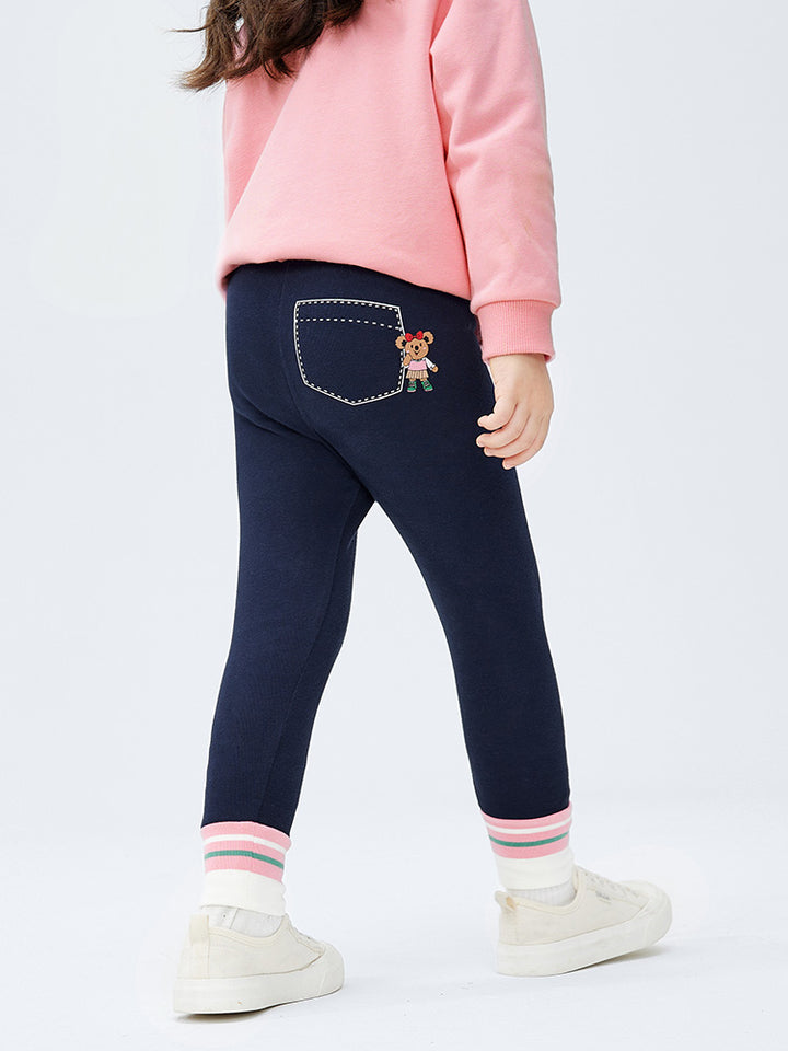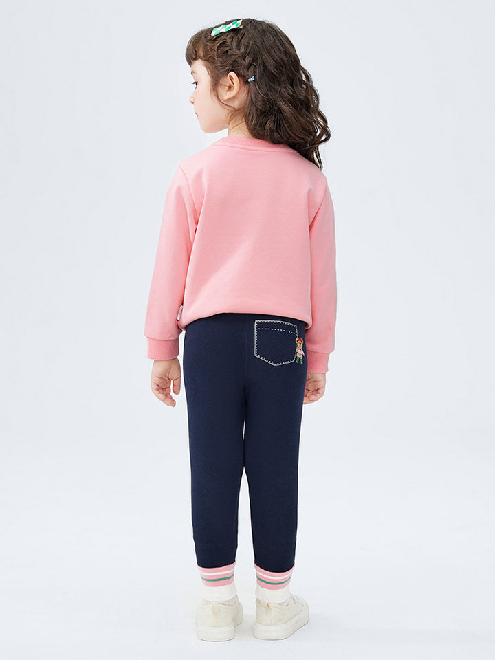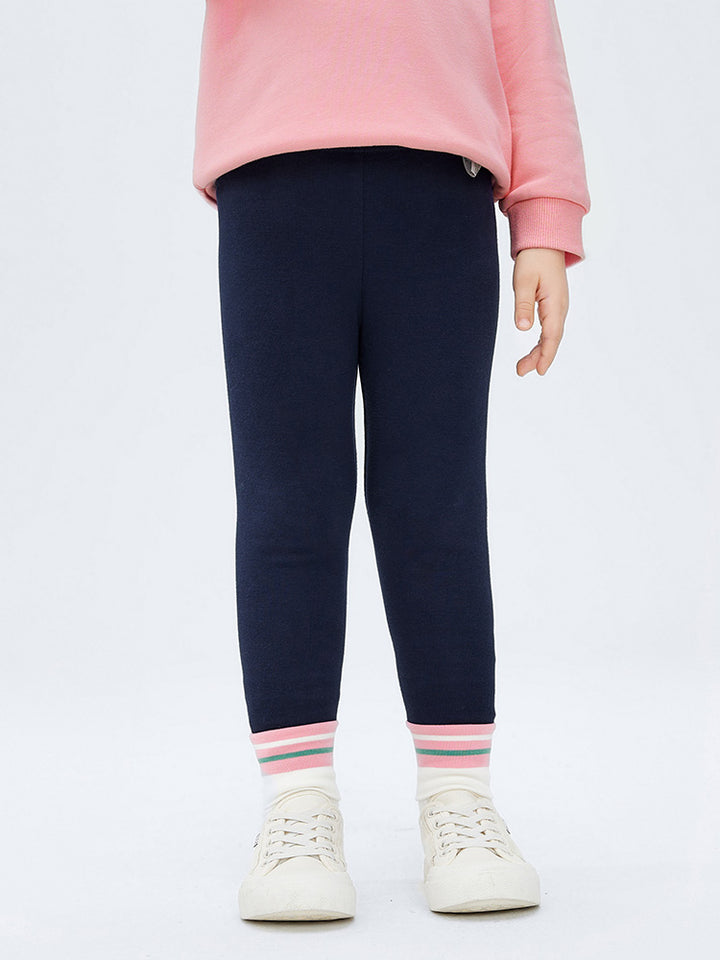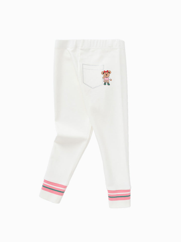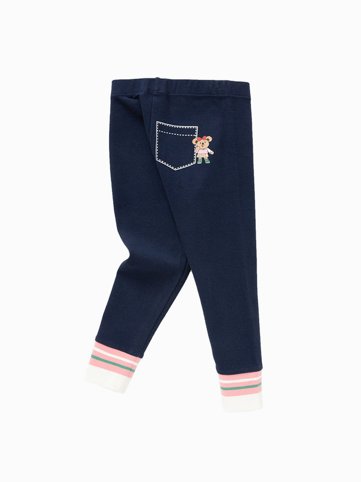 بنطلون ليقنز بناتي كاجوال بخامة قابلة للتمدد، مزين بطبعة من الجهة الخلفية وتفاصيل خطوط أسفل الساقين، ويأتي بخصر مطاطي مريح