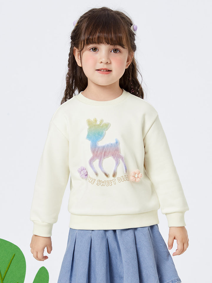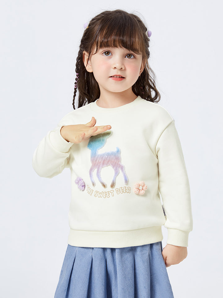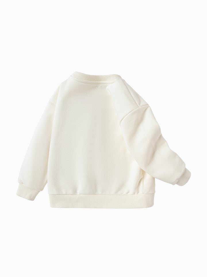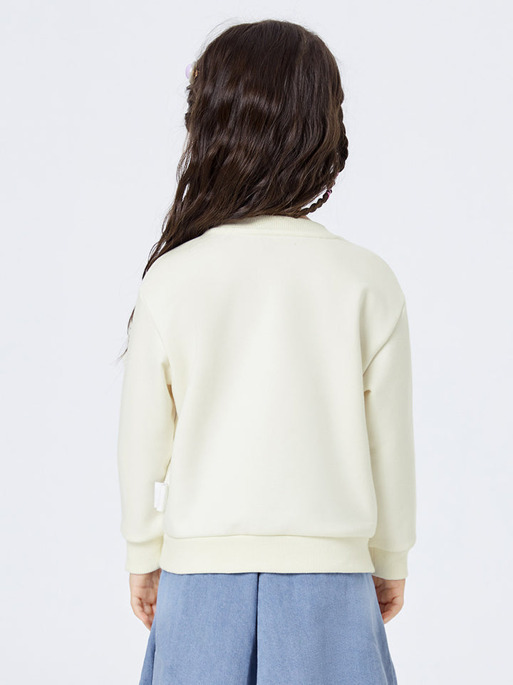 بلوزة سويت شيرت كاجوال بأكمام طويلة، مزينة بطبعة وتفاصيل على شكل جيب سحاب بتصميم ظريف من الجهة الأمامية، تأتي بياقة مدورة الشكل