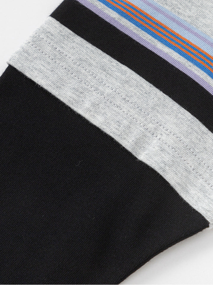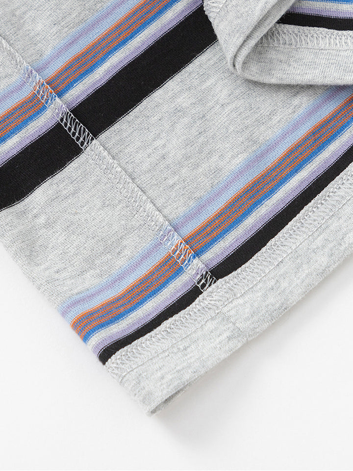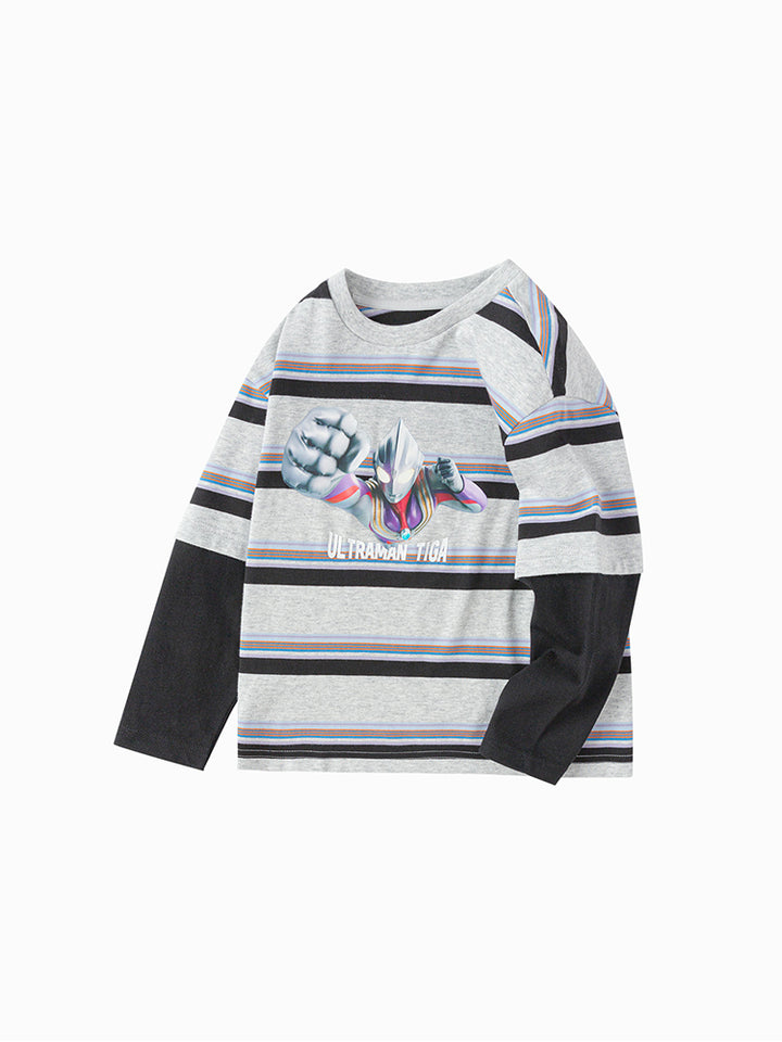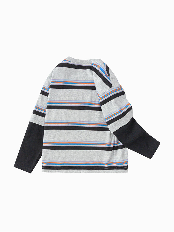 تيشيرت كاجوال بأكمام طويلة، مزين بنمط مخطط على كامل التصميم، يأتي بياقة مدورة الشكل