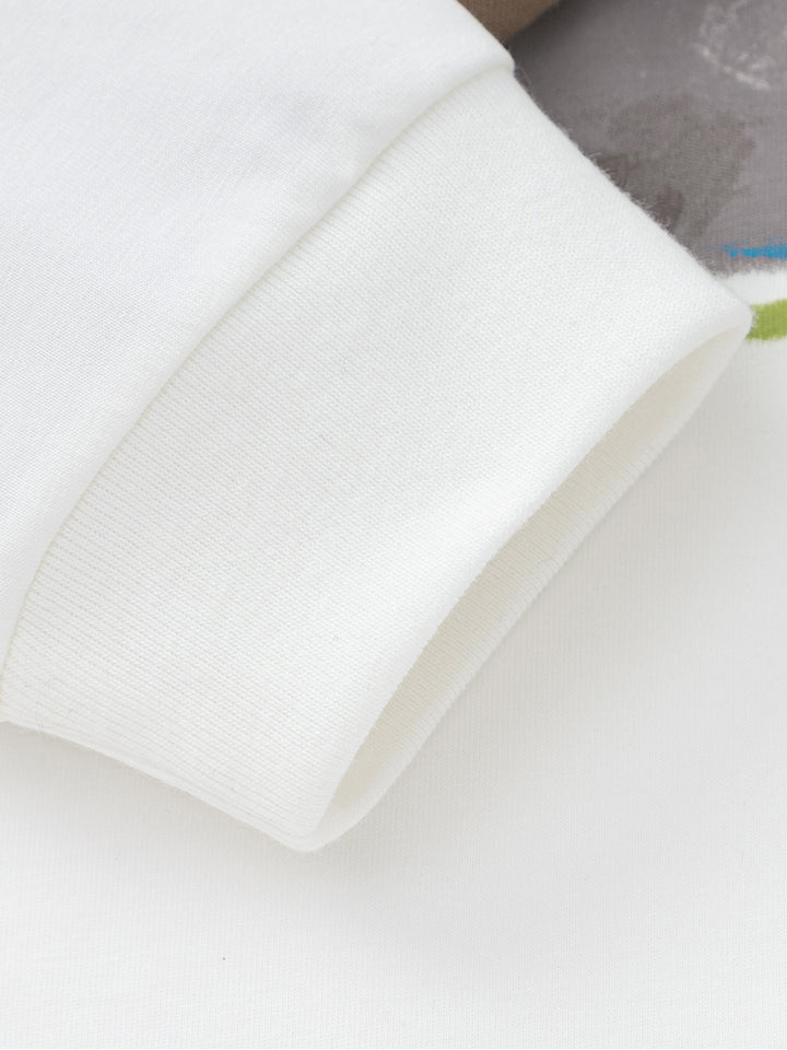 بلوزة ولادي كاجوال بأكمام طويلة، مزينة بطبعة من الجهة الأمامية، وتأتي بياقة مدورة الشكل
