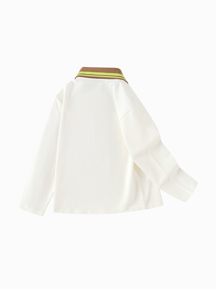 تيشيرت بولو ولادي بأكمام طويلة، مزينة بتطريز، تأتي بأزرار للإغلاق وياقة عادية