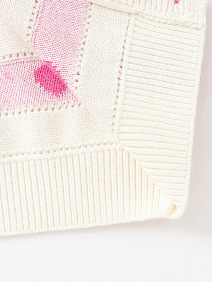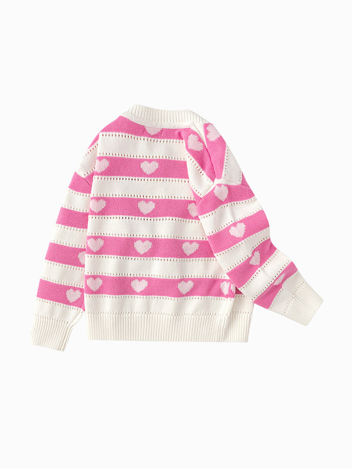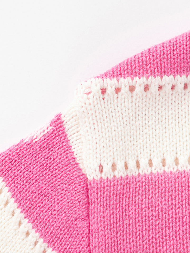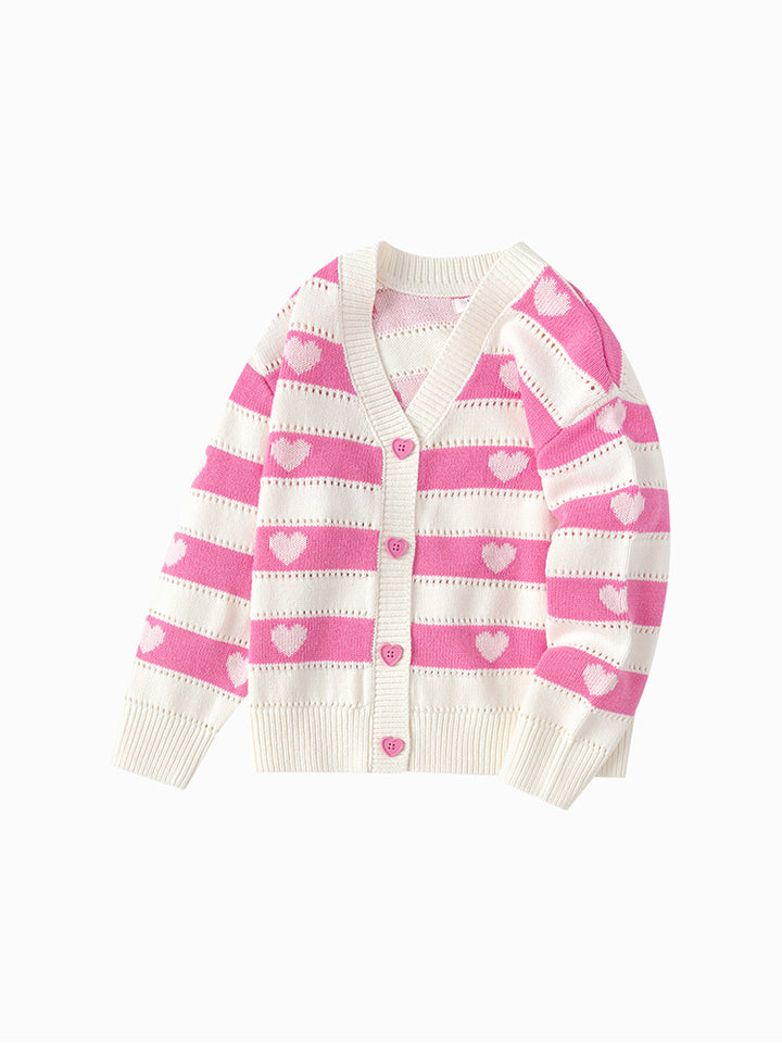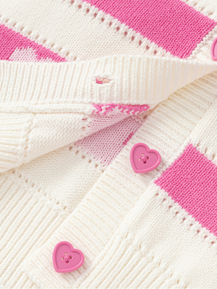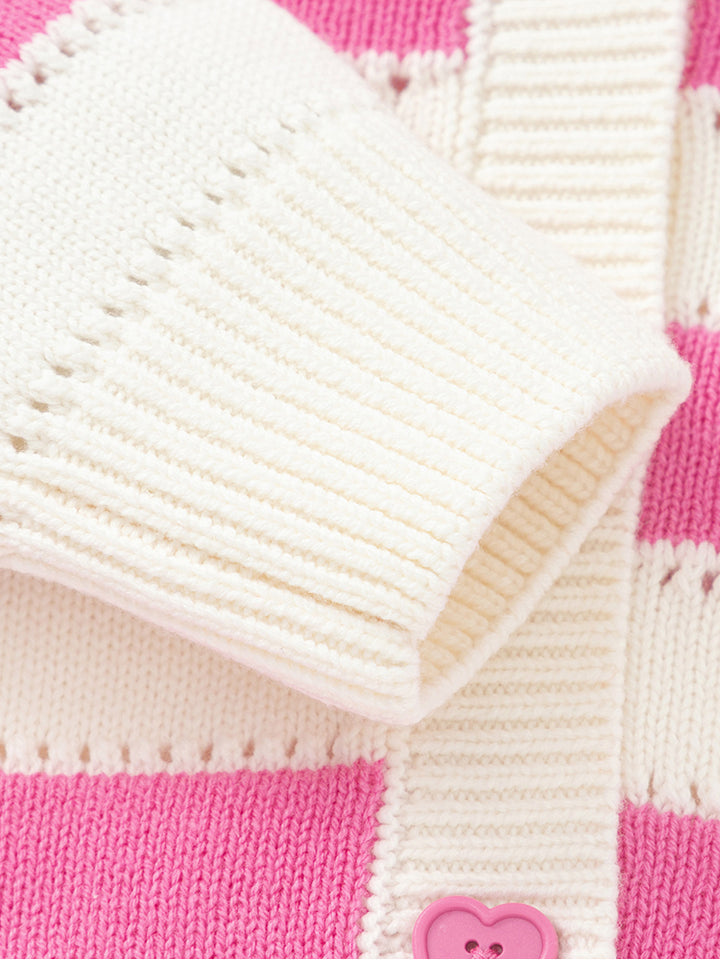 جاكيت كارديغان صوف بأكمام طويلة، مزين بنمط مخطط، يأتي بأزرار للإغلاق من الجهة الأمامية وبياقة على شكل V