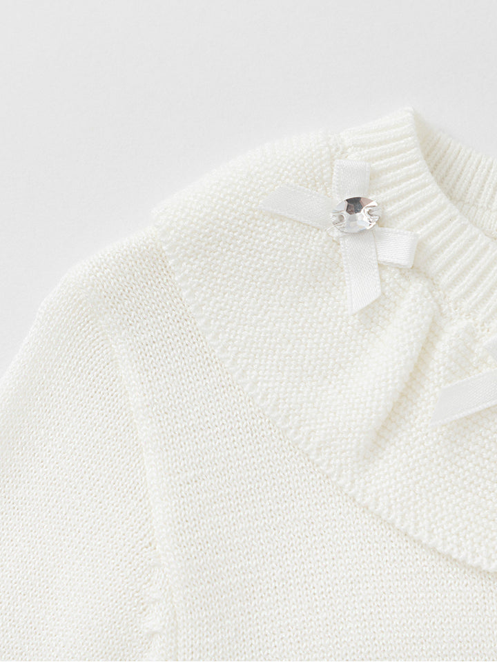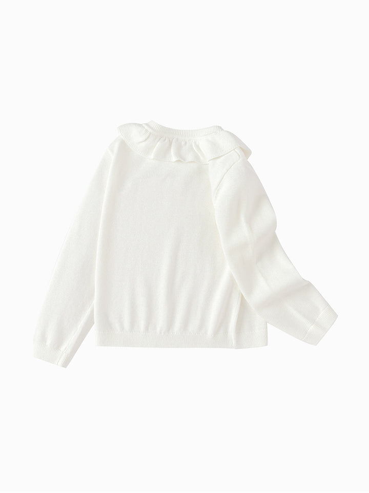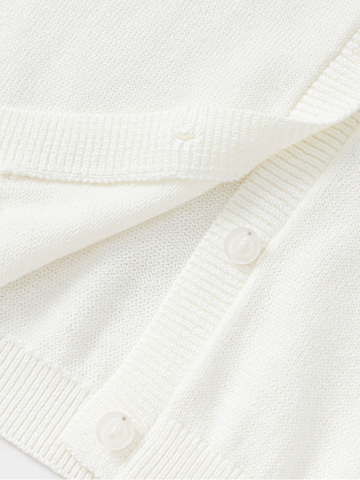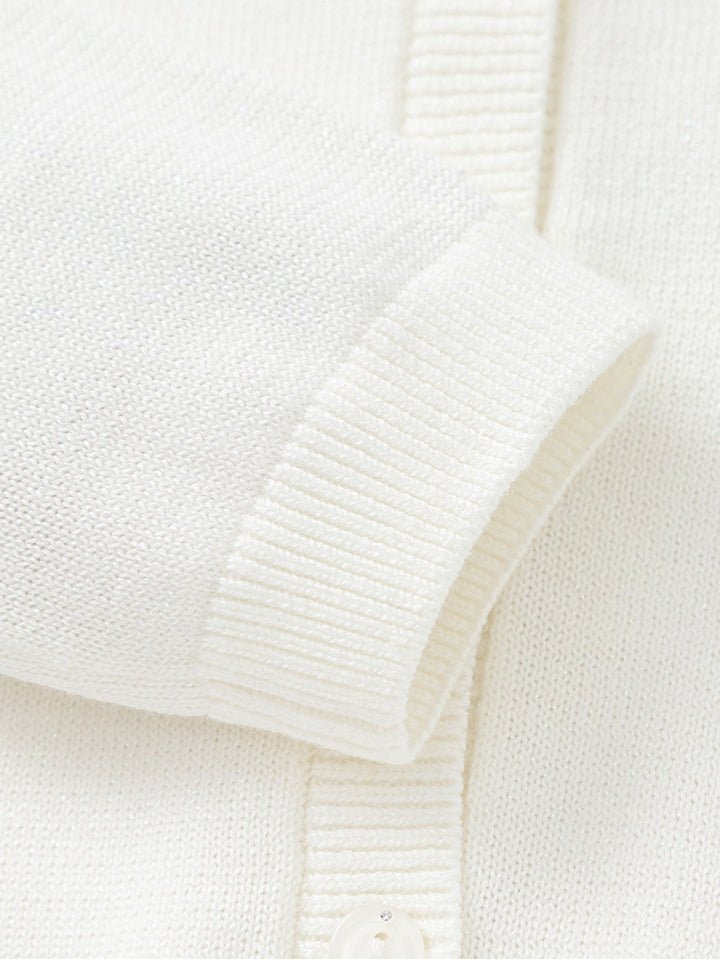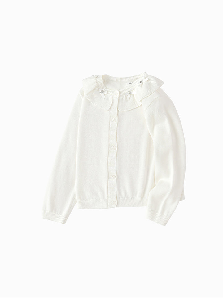 كارديغان بناتي بأكمام طويلة وبخامة نسيج محبوك بنمط ذو لون موحد بتفاصيل زينة على الياقة، ياتي بأزرار للإغلاق من الجهة الأمامية