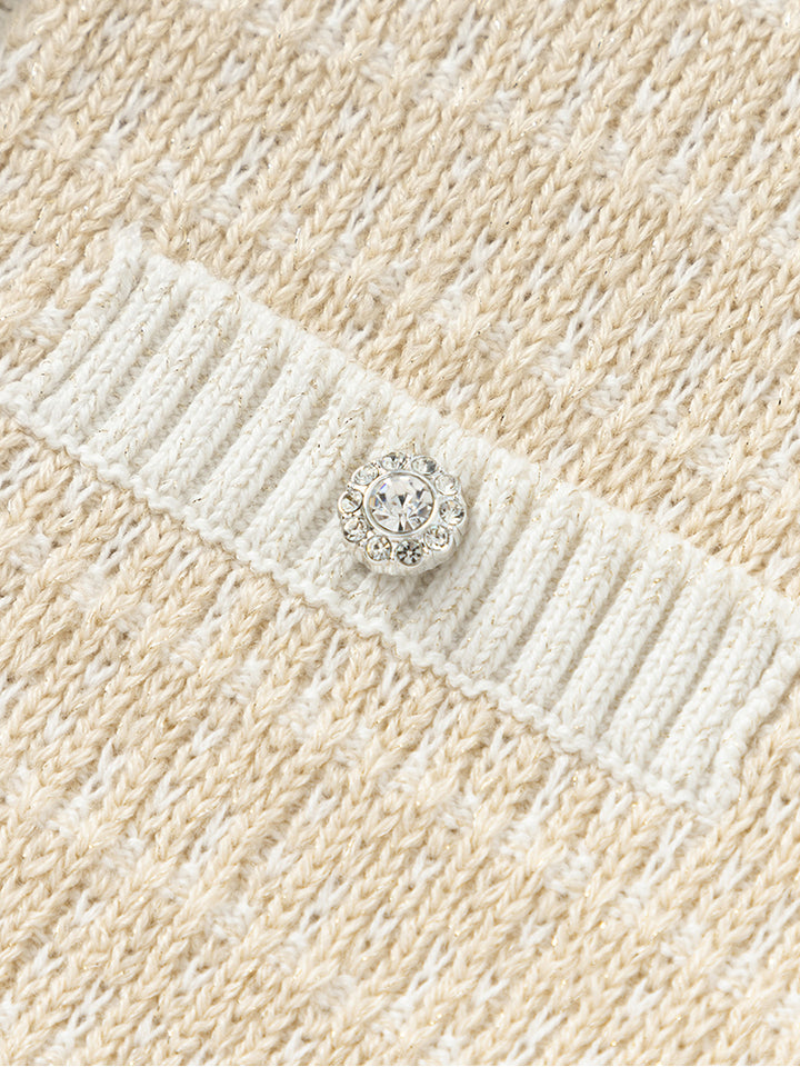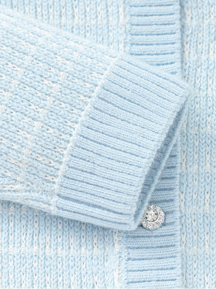 جاكيت كارديغان صوف بأكمام طويلة، مزين بنمط متباين اللون، يأتي بأزرار للإغلاق من الجهة الأمامية وبياقة مدورة الشكل