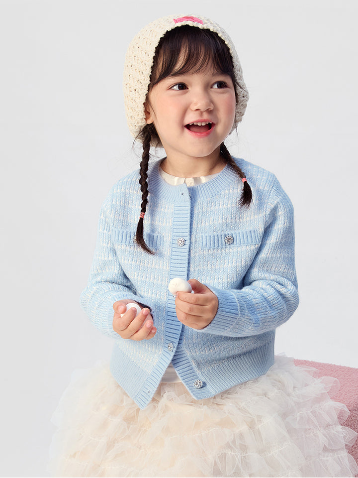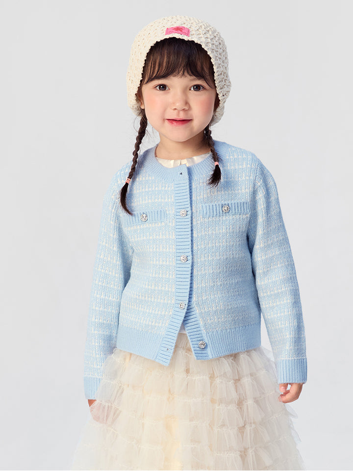 كارديغان صوف متباين اللون للبنات