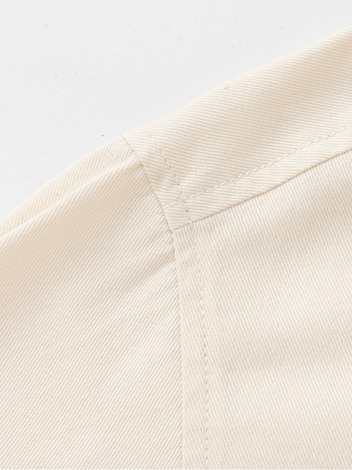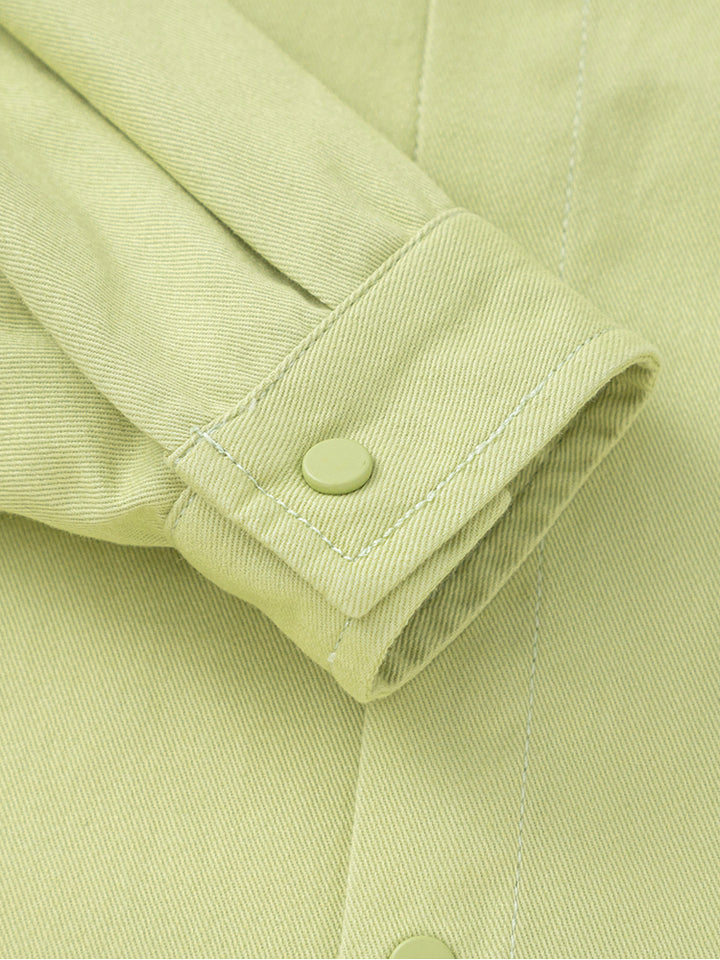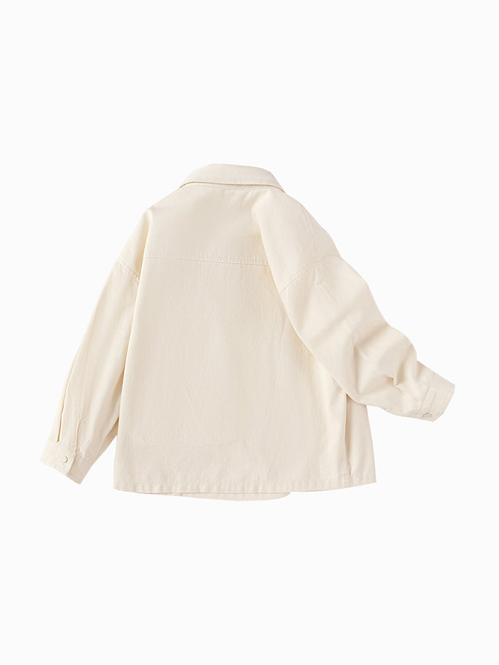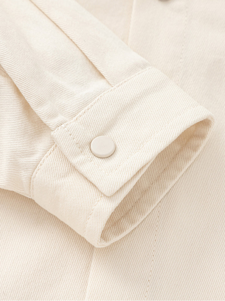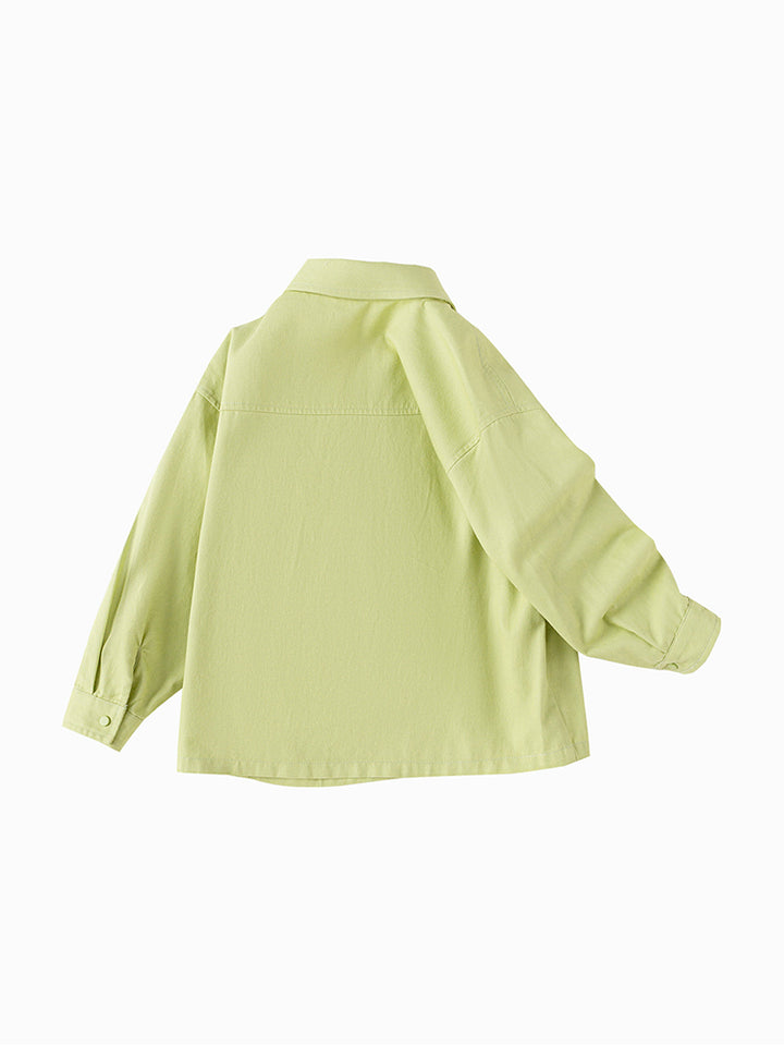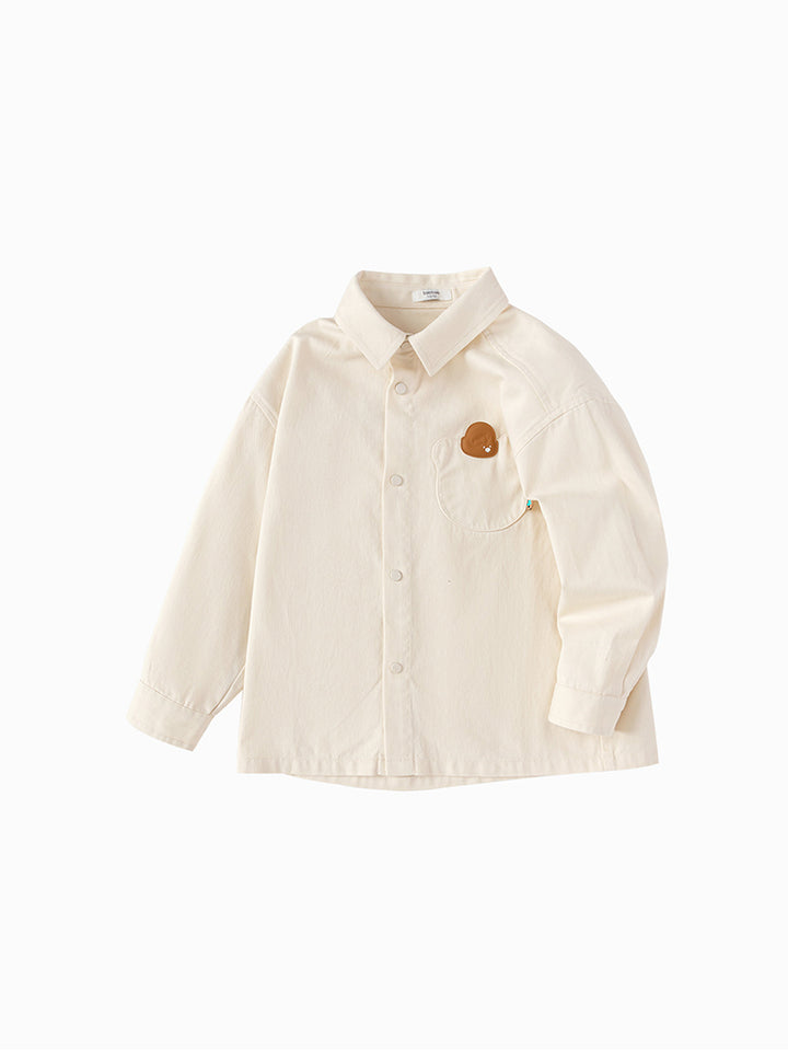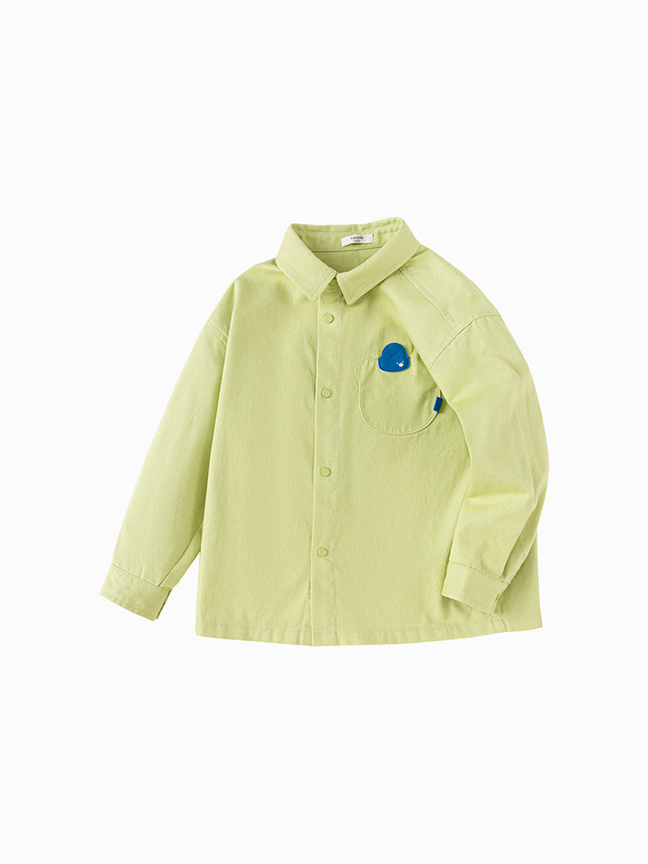 قميص ولادي كاجوال بأكمام طويلة، مزين برقعة صغيرة من الجهة الأمامية، يأتي بأزرار كبس للإغلاق من الجهة الأماماية، جيب من الجهة الأمامية وبياقة كلاسيكية عادية