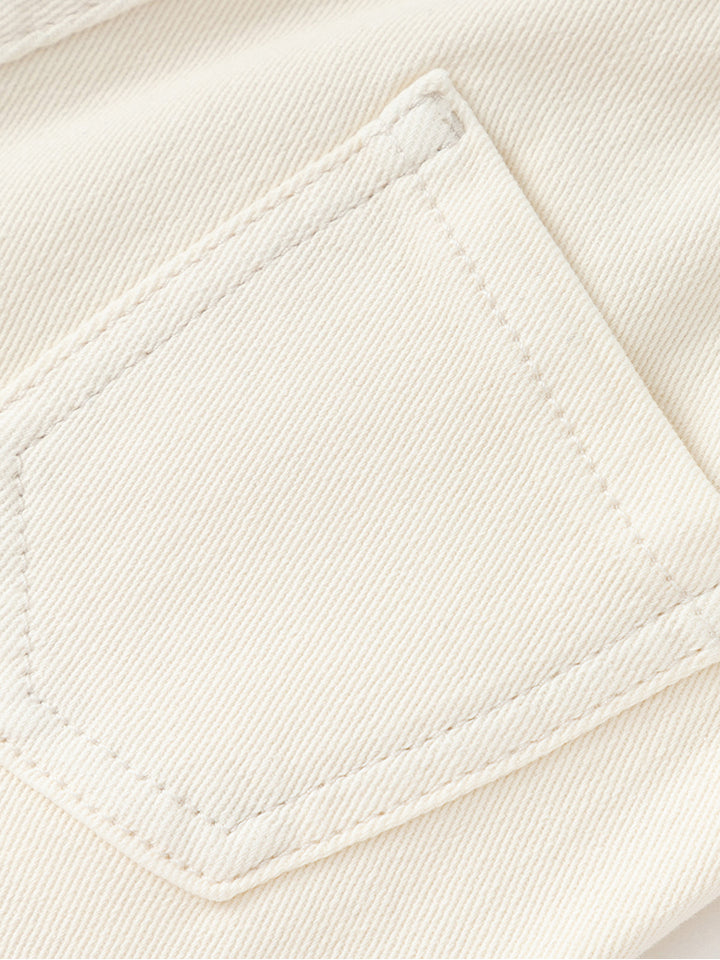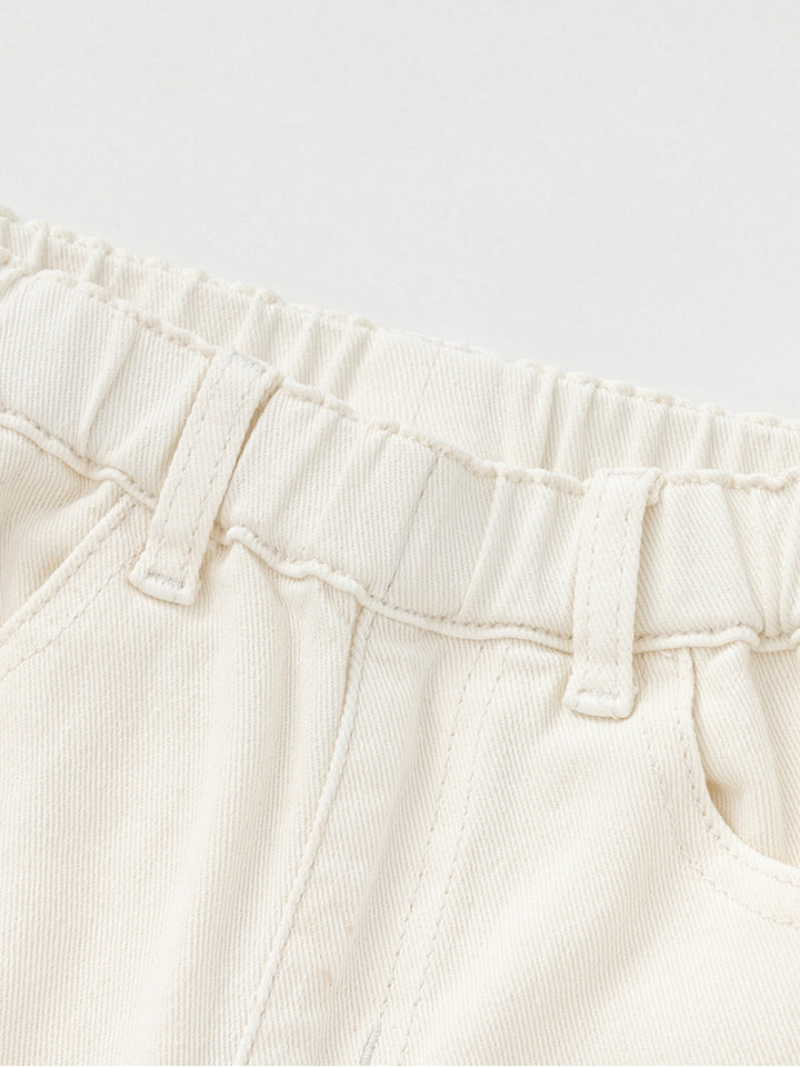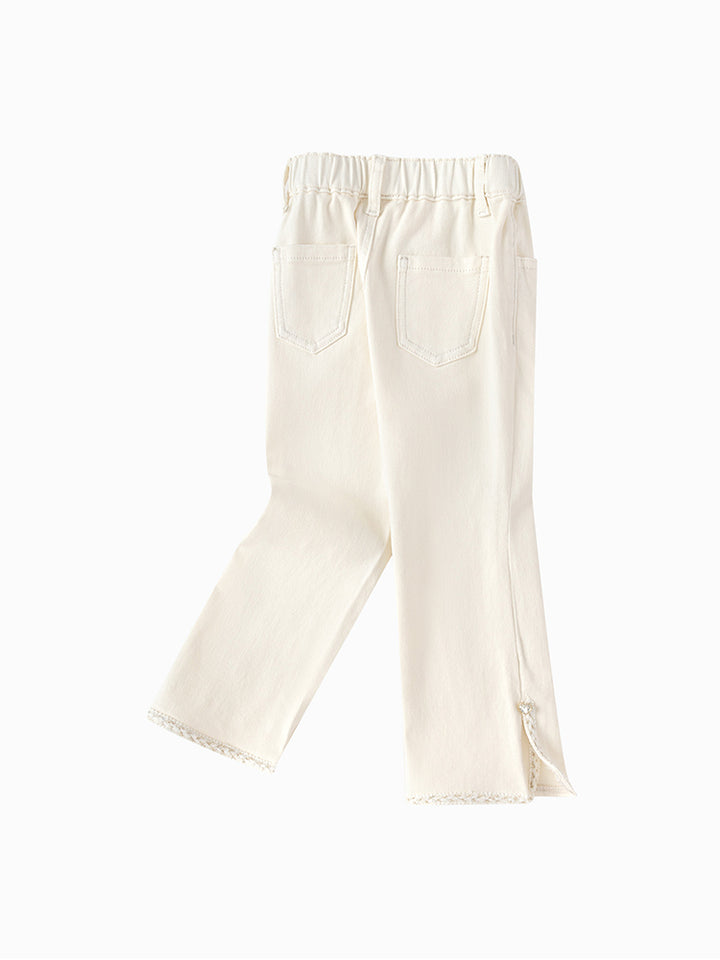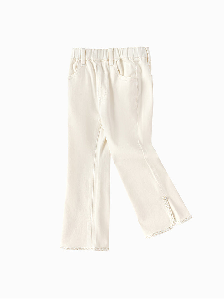 بنطلون جينز بلون موحد، مزين بتفاصيل فتحات أسفل الساقين، يأتي بجيوب وبخصر مطاطي مرن ومريح