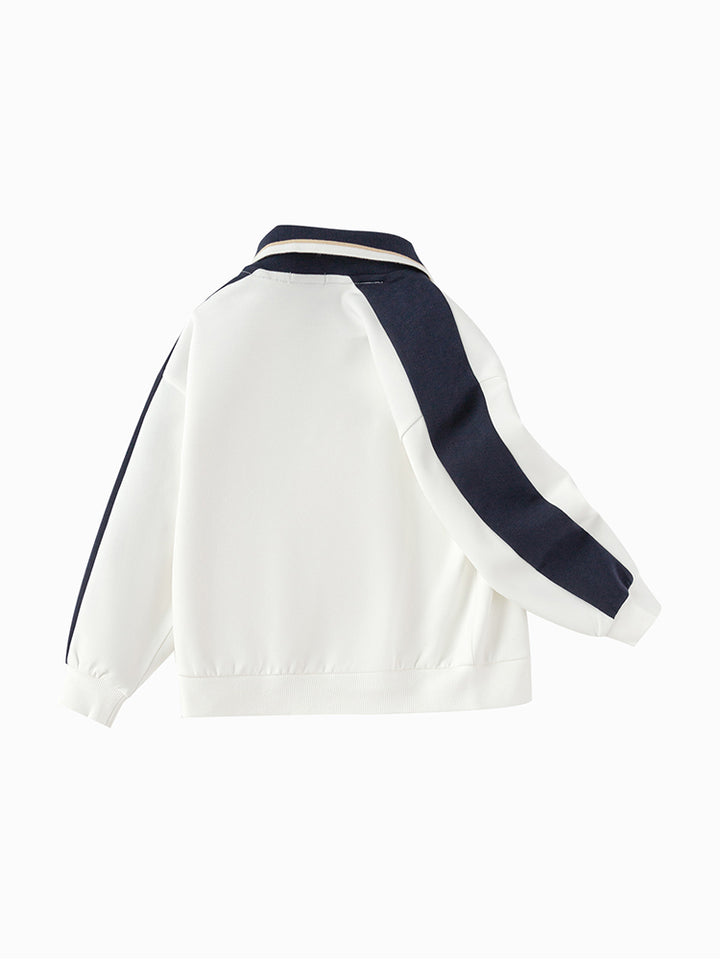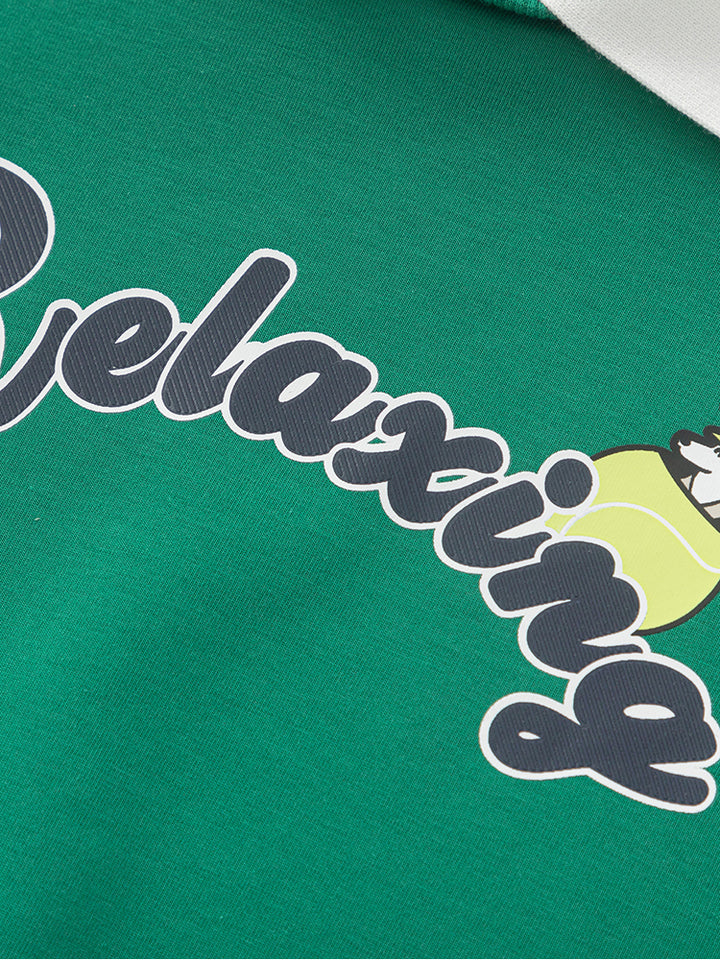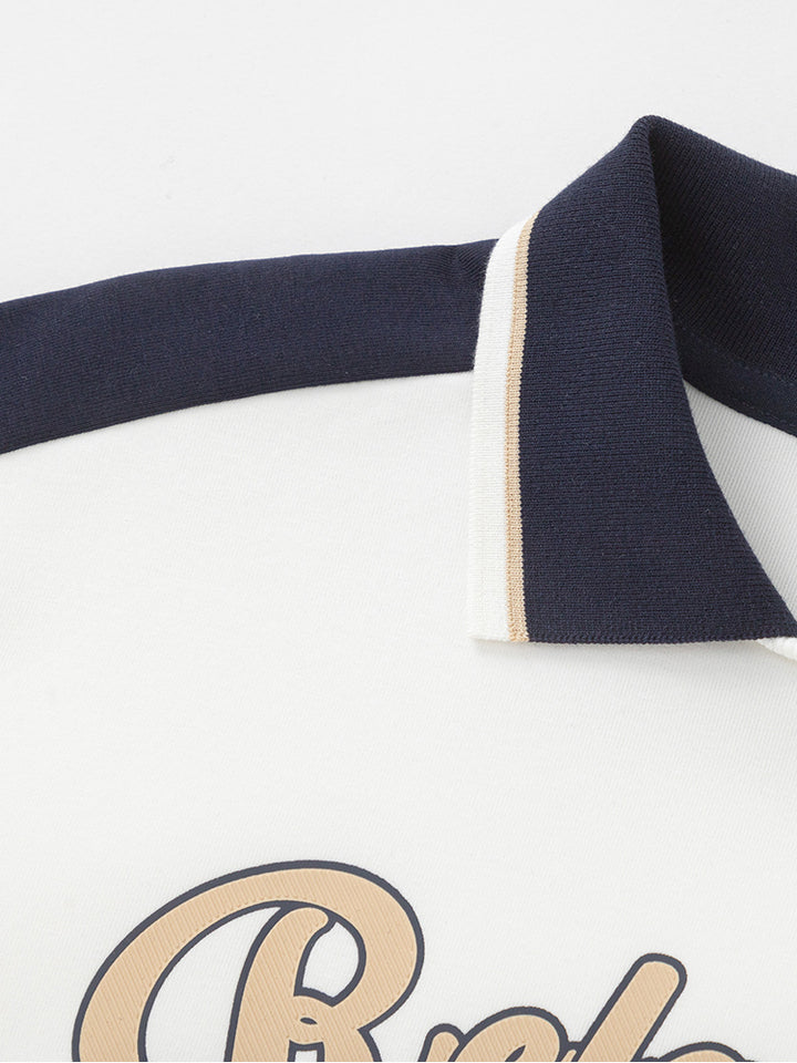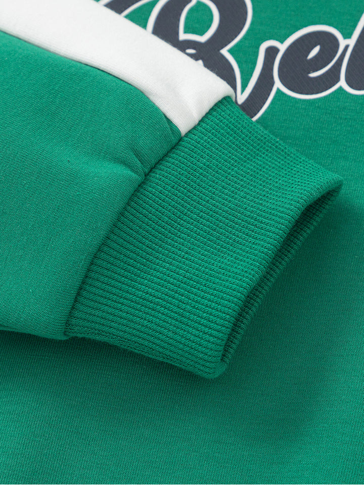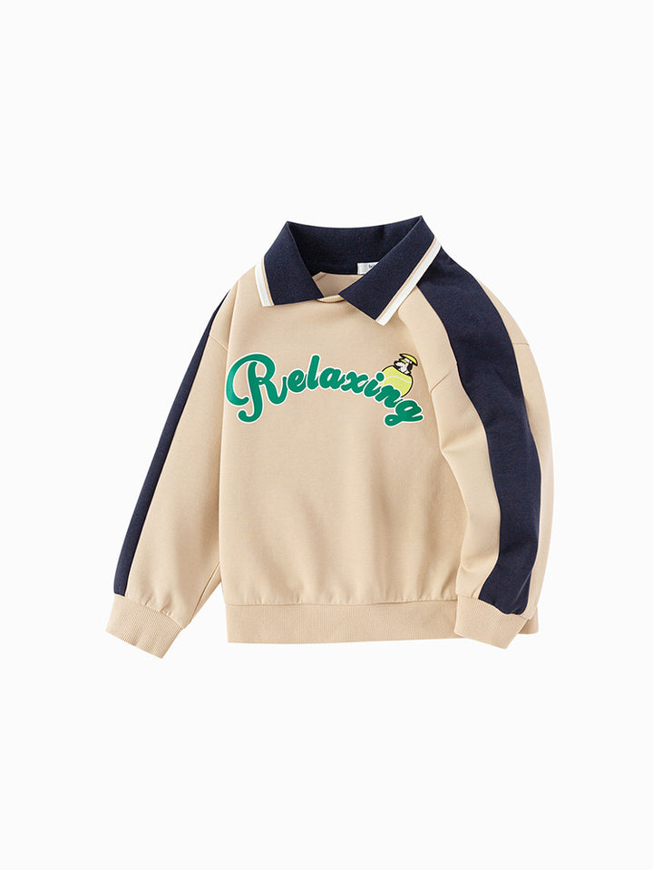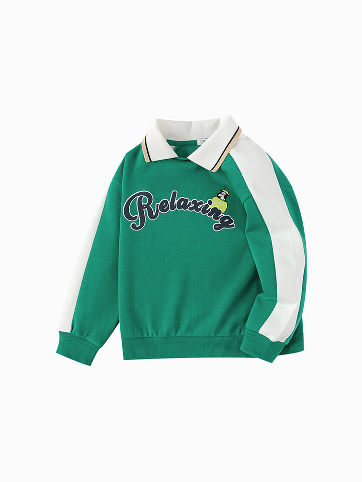 بلوزة سويت شيرت ولادي بأكمام طويلة، مزينة بطبعة وتأتي بياقة كلاسيكية عادية