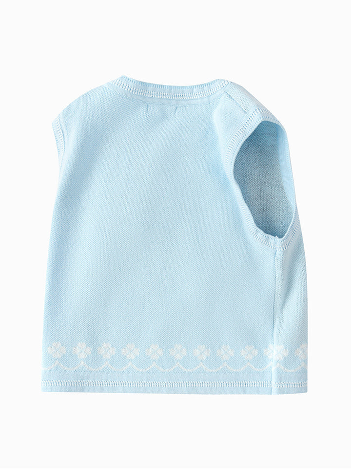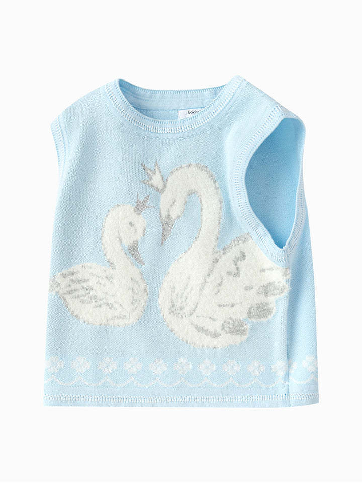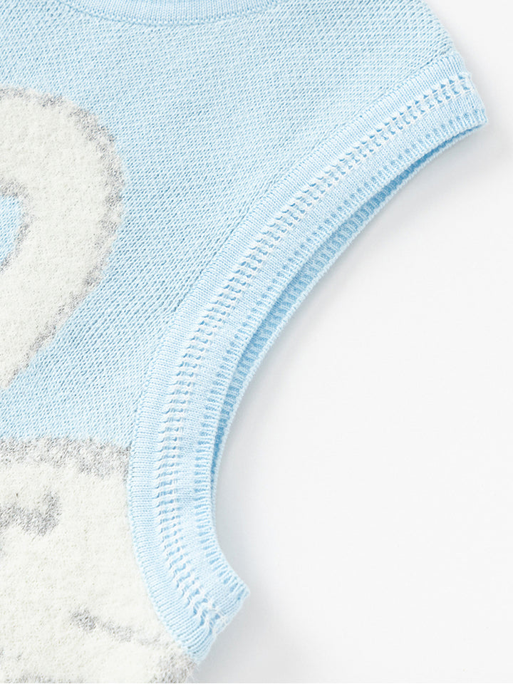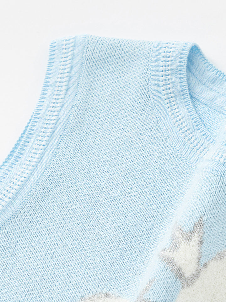 فيست بناتي بدون أكمام بخامة نسيج محبوك، مزين بطبعة، يأتي بياقة مدورة الشكل