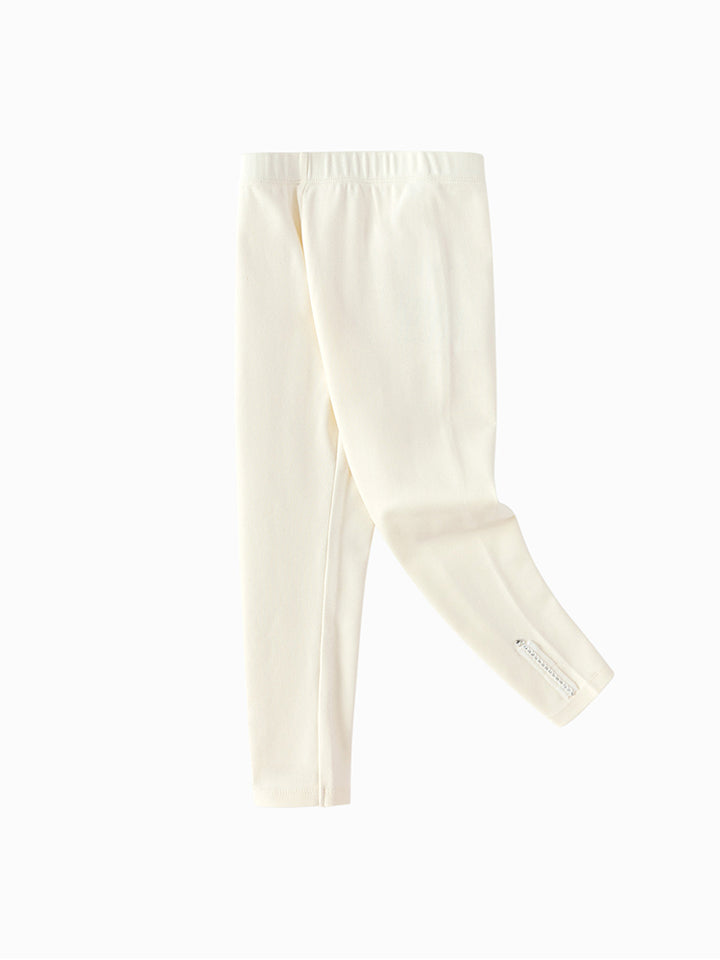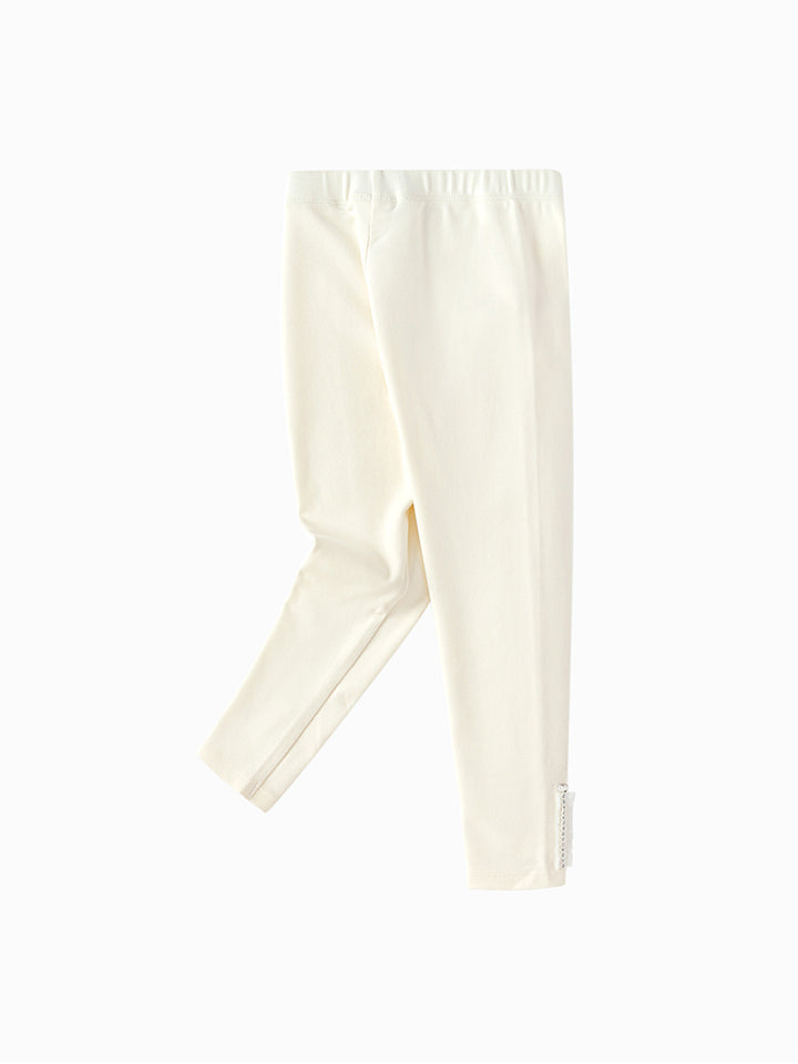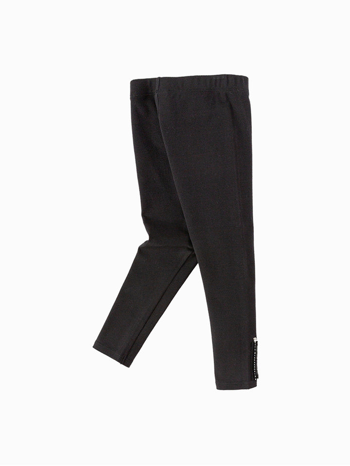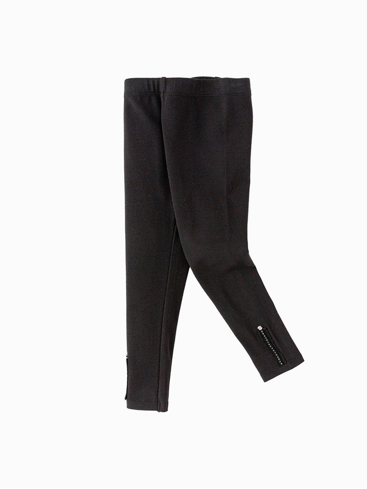 بنطلون ليقنز بناتي بلون موحد، مزين بتفاصيل نسيج مطرز أسفل الساقين، ويأتي بخصر مطاطي مريح