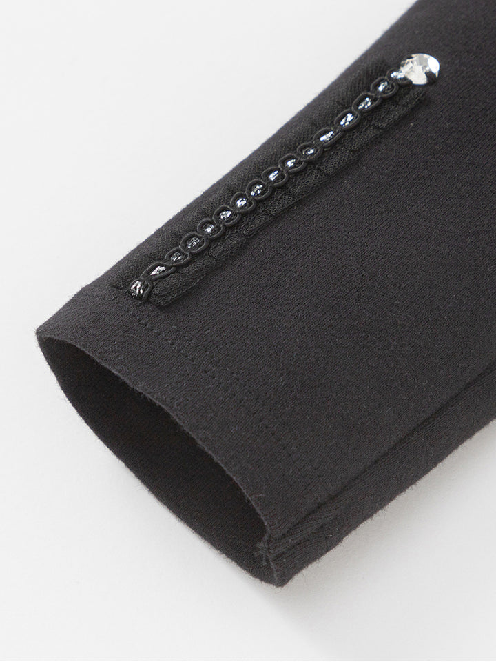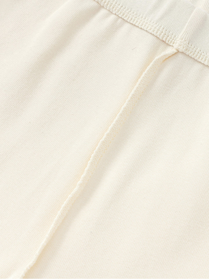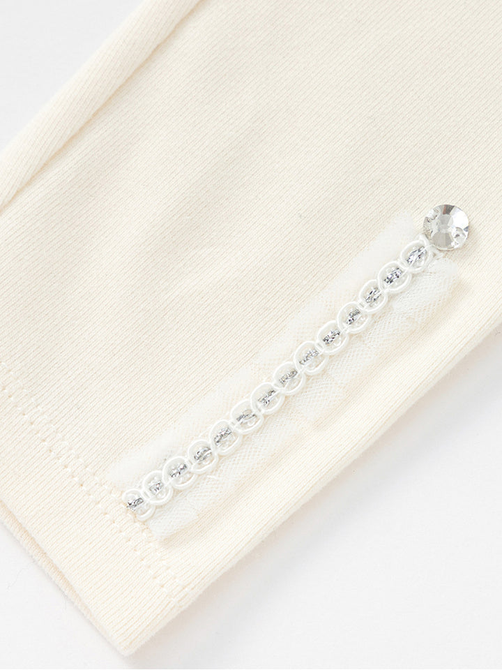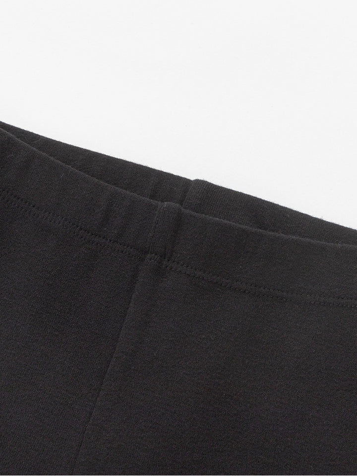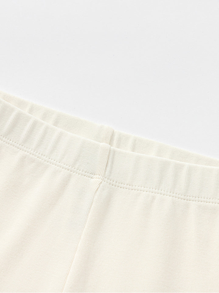 بنطلون ليقنز بناتي بلون موحد، مزين بتفاصيل نسيج مطرز أسفل الساقين، ويأتي بخصر مطاطي مريح