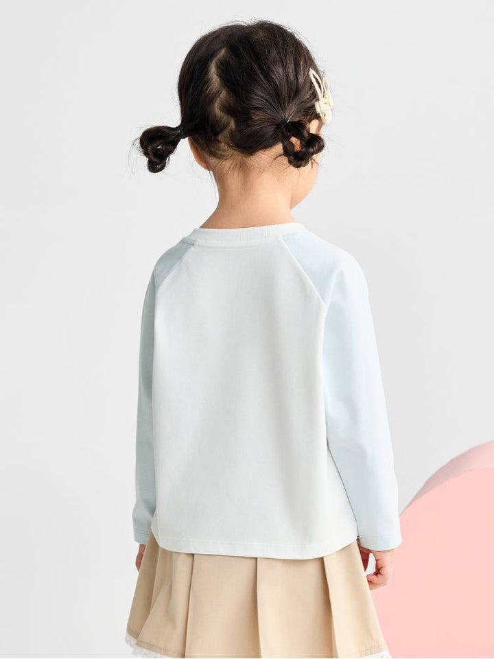 توب بأكمام طويلة مع تصميم جرافيك أمامي للبنات