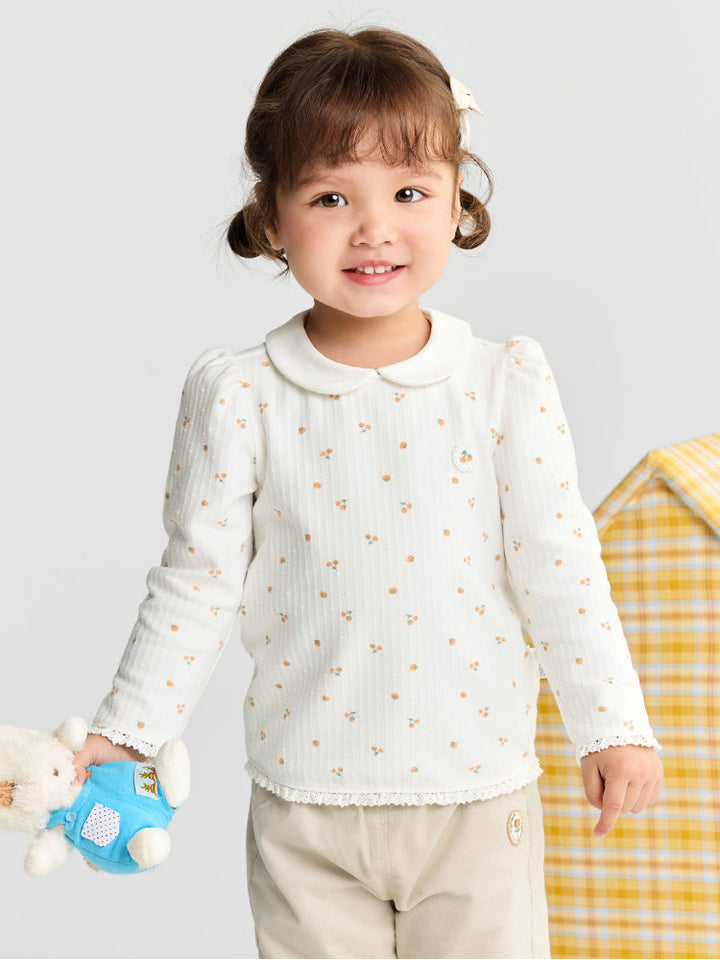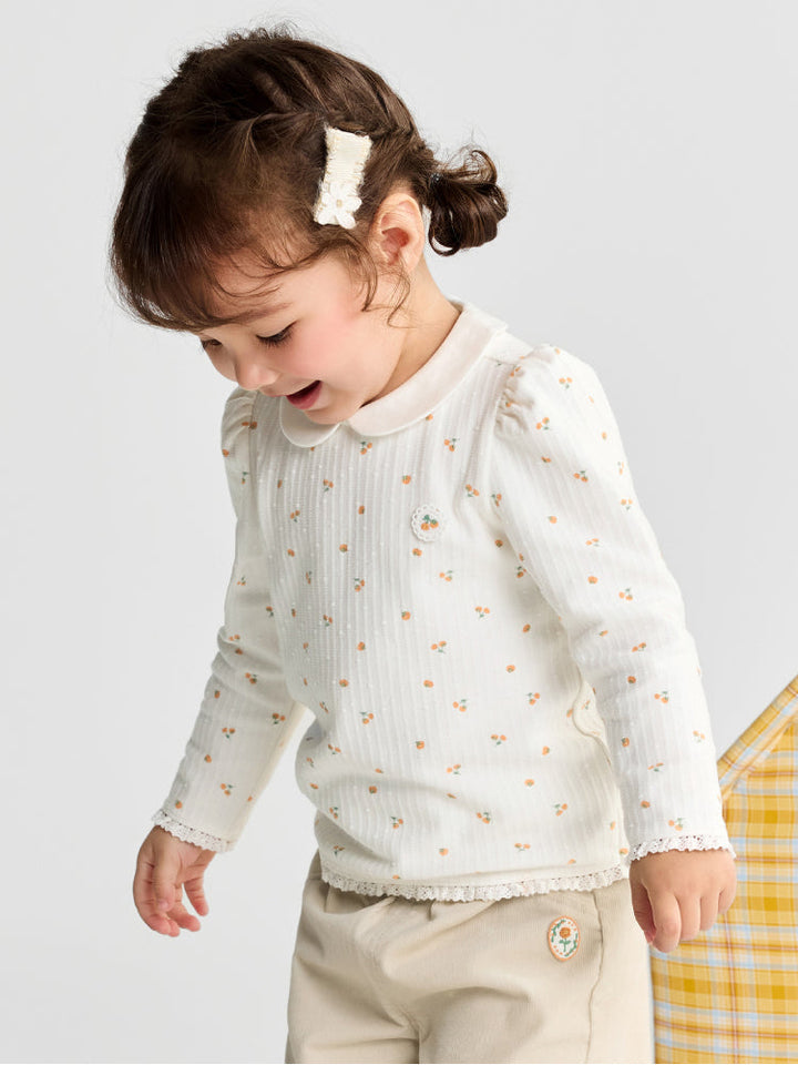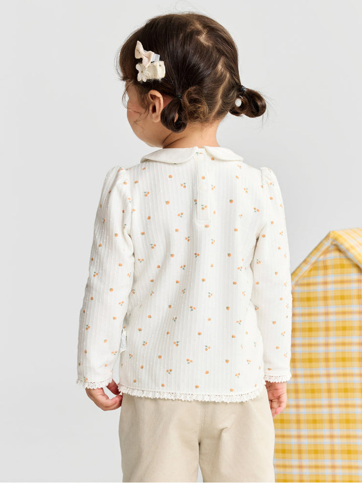 توب بأكمام طويلة مع ياقة وتفاصيل منقوشة للبنات