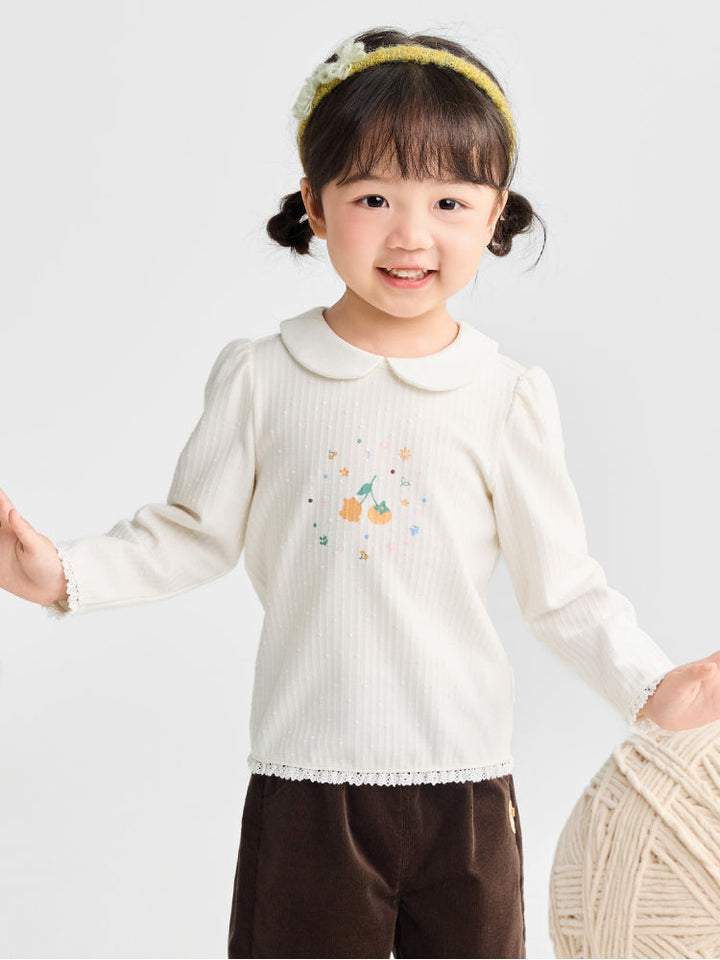 توب بأكمام طويلة مع ياقة وتفاصيل منقوشة للبنات