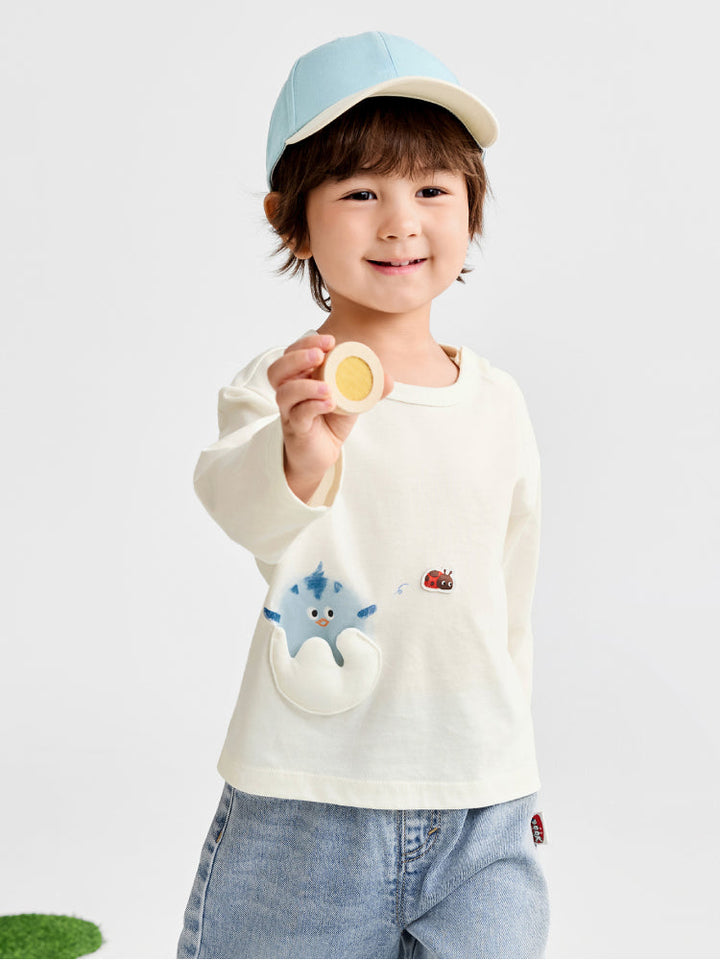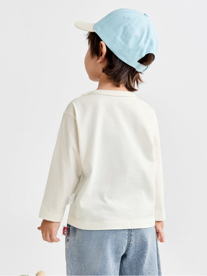 توب بأكمام طويلة مع تصميم أمامي مرح للأولاد