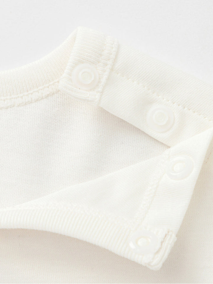 توب مريح بأكمام طويلة مزين بتصميم مرح في الأمام مع ياقة مستديرة بسيطة مصنوع من خامة ناعمة قابلة للتنفس مثالي للإطلالات الكاجوال.