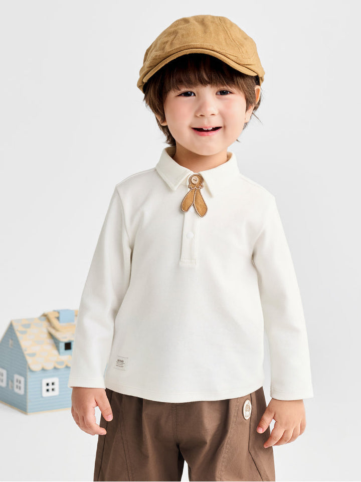 توب بولو بأكمام طويلة مع تفصيل زر للأولاد