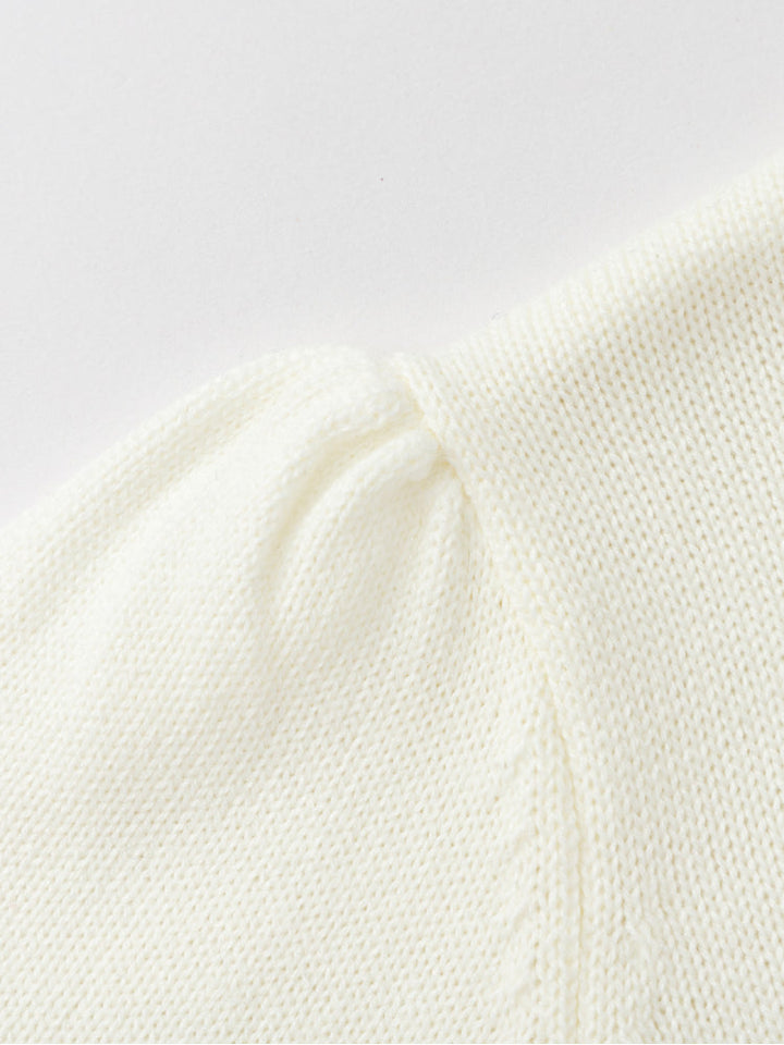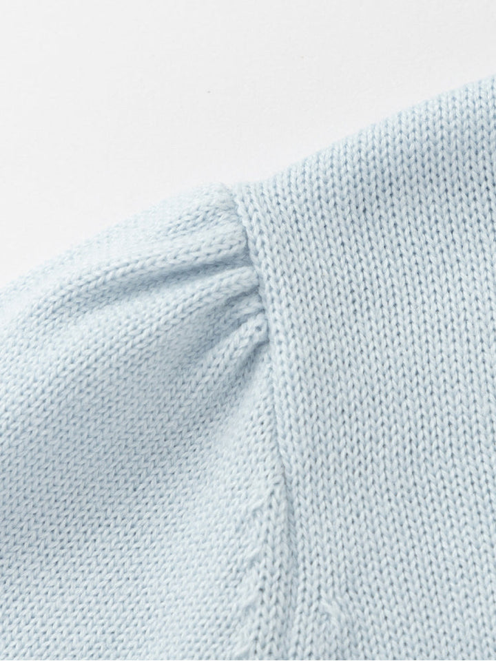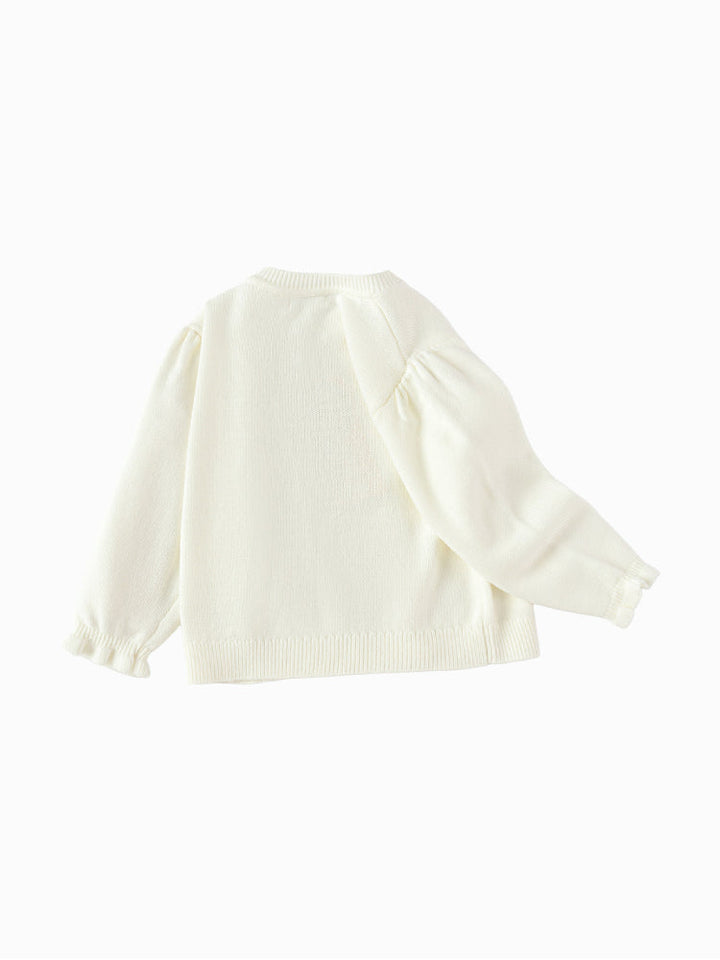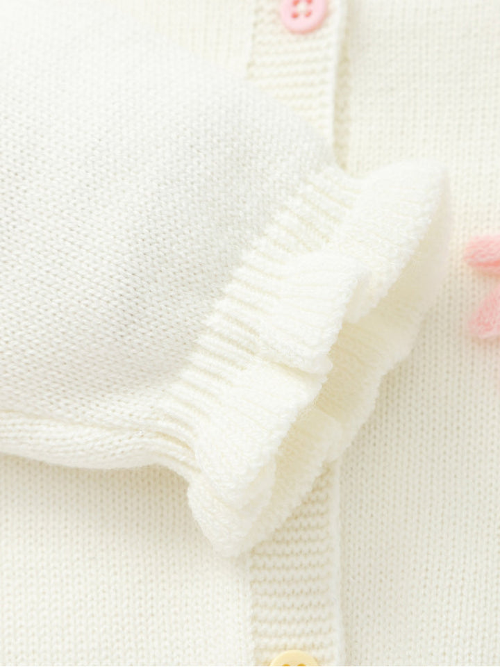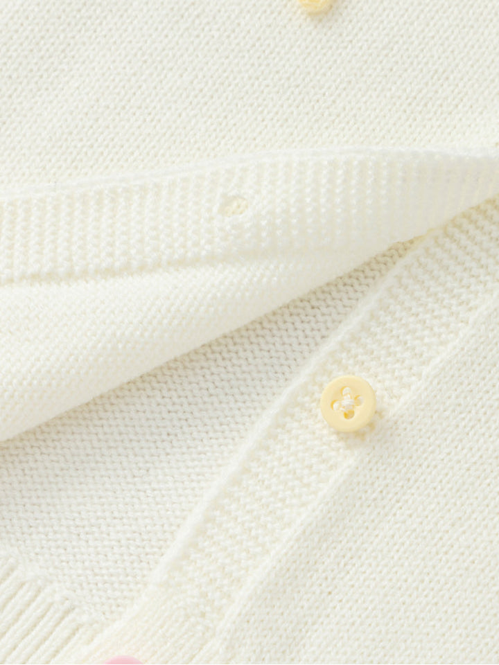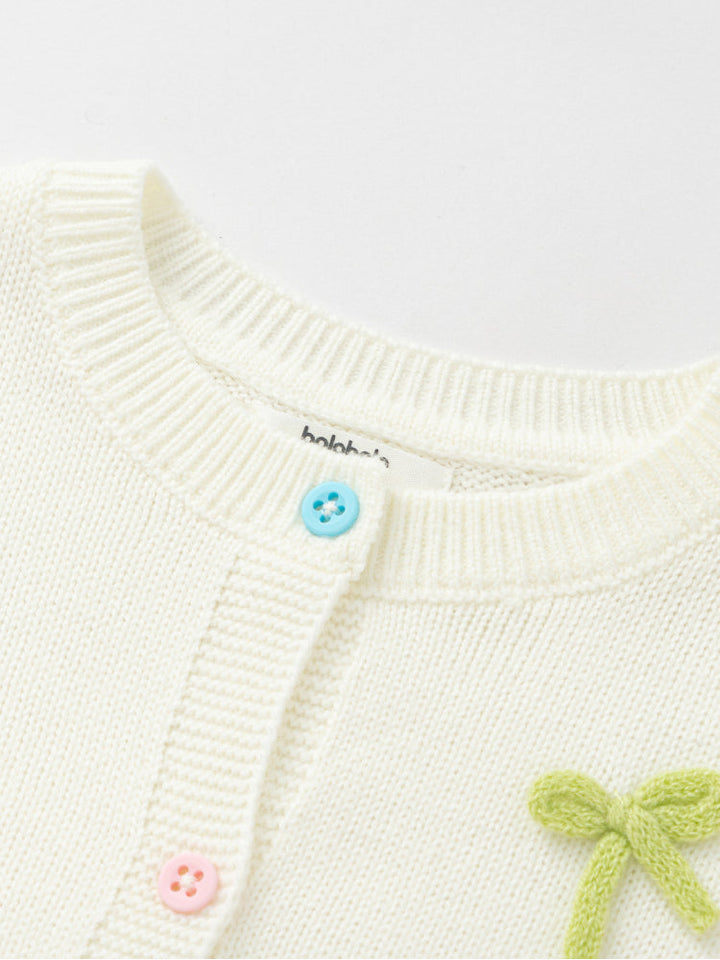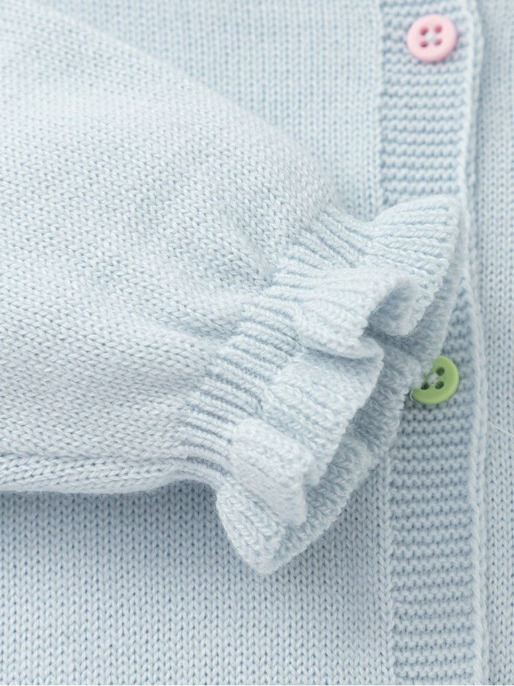 كارديغان محبوك ناعم بقصة مريحة وإغلاق بأزرار أمامية، مزين بتفاصيل منسوجة أنيقة تضفي لمسة جاذبية، مما يجعله خيارًا مثاليًا للارتداء كطبقة إضافية مع مختلف الإطلالات.