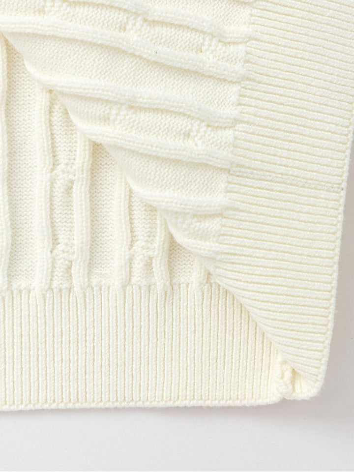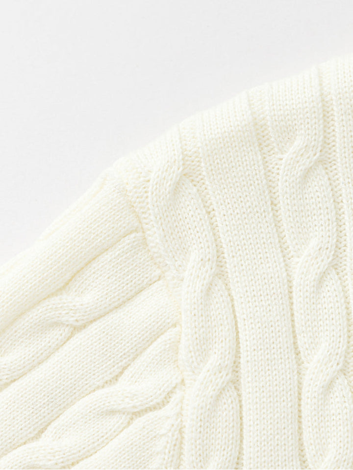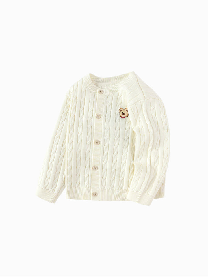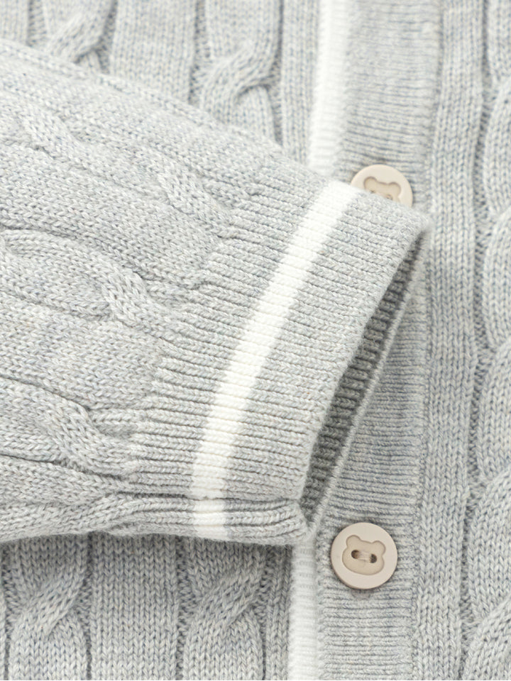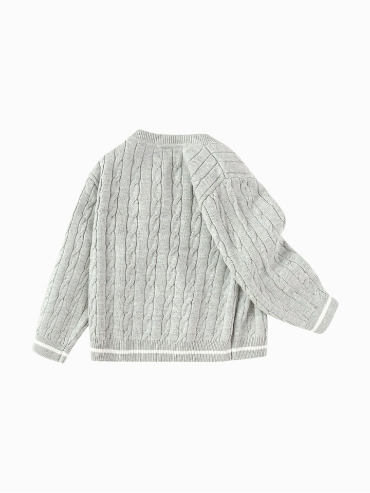 كارديغان محبوك ناعم بقصة مريحة وإغلاق بأزرار أمامية، مزين بتفاصيل منسوجة أنيقة تضفي لمسة جاذبية، مما يجعله خيارًا مثاليًا للارتداء كطبقة إضافية مع مختلف الإطلالات.