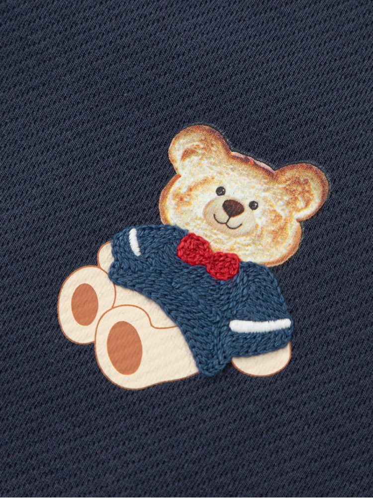 طقم مكون من بلوزة ناعمة مزينة بتفاصيل مرحة من الأمام مع سروال بفتحات مطاطية لراحة أكبر وسهولة الحركة. مثالي للاستخدام اليومي والنشاطات.