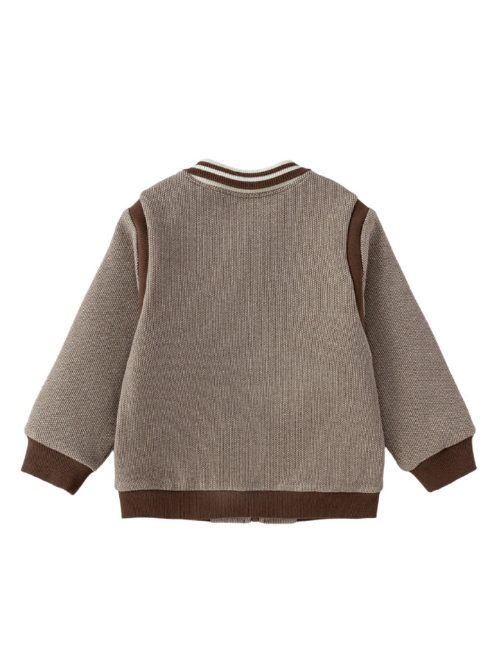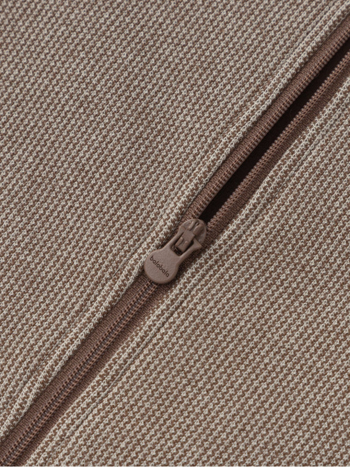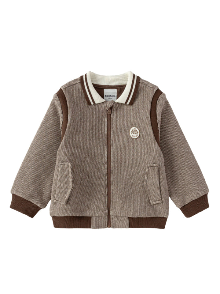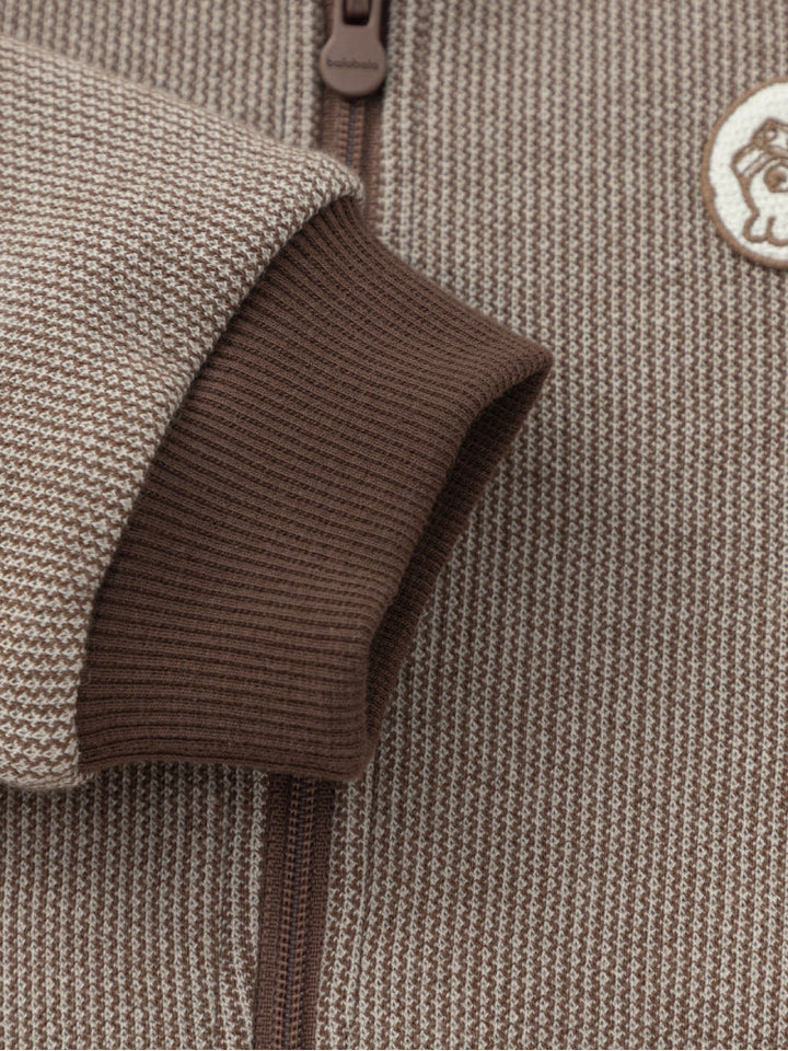 جاكيت عملي بسحّاب أمامي، يتميز بأساور وحافة مضلعة، وجيوب جانبية مع تفصيلة رقعة صغيرة على الصدر لإطلالة رياضية يومية.