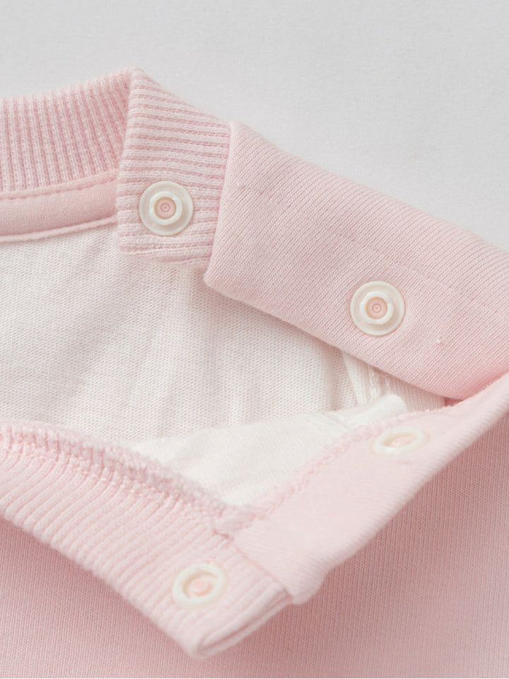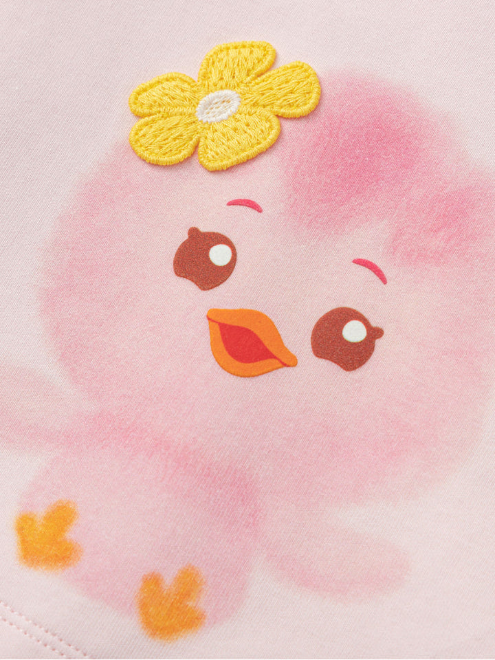 سويت شيرت قصير بطبقات فوق قطعة سفلية ناعمة، مزين بطبعة جذابة.