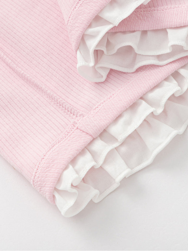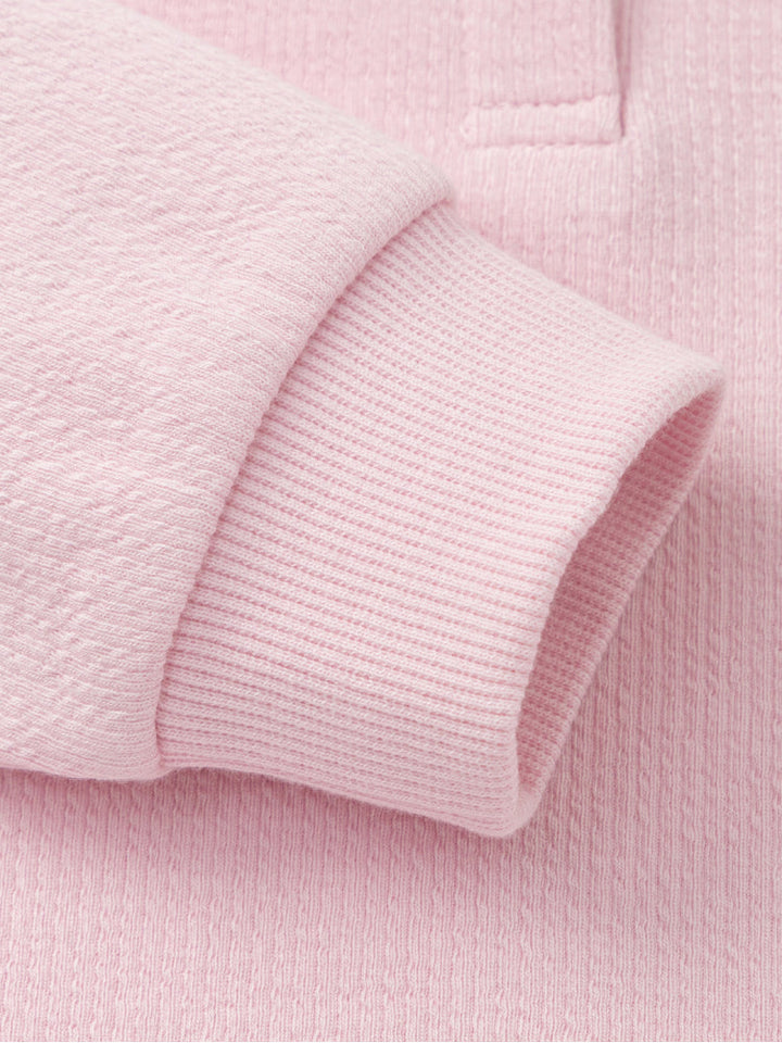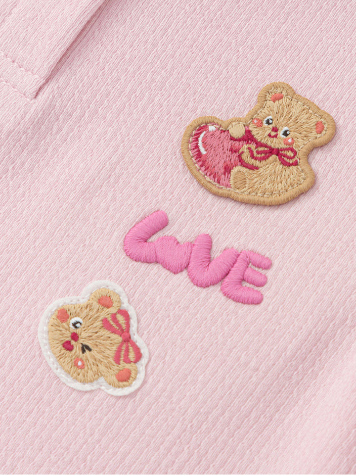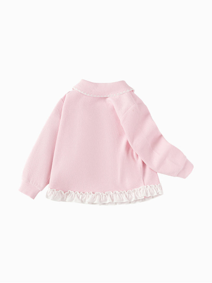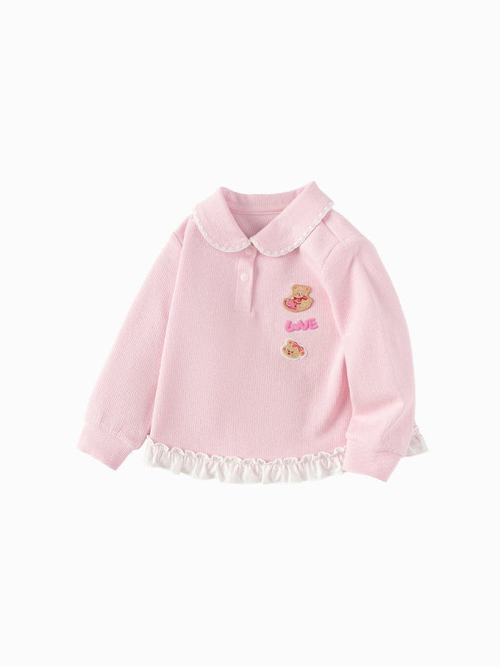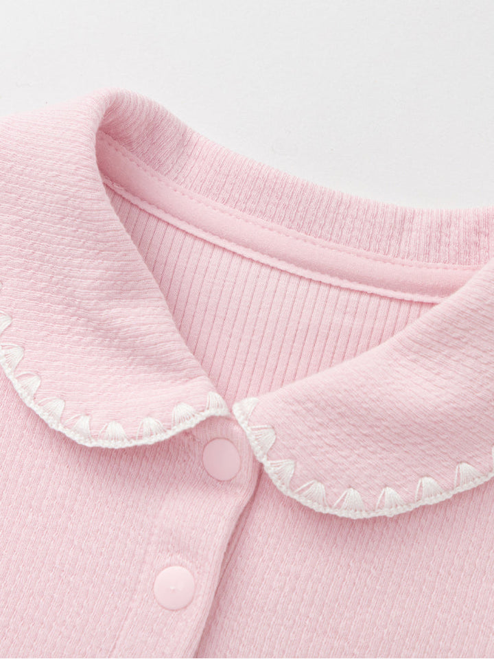 توب بأكمام طويلة بتصميم ياقة كلاسيكية مع لمسات تطريز ناعمة وتفاصيل مطرزة مرحة. يكتمل بلمسة كشكش أسفل الخامة لإطلالة أنيقة وعفوية.