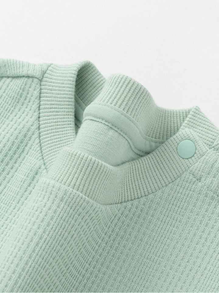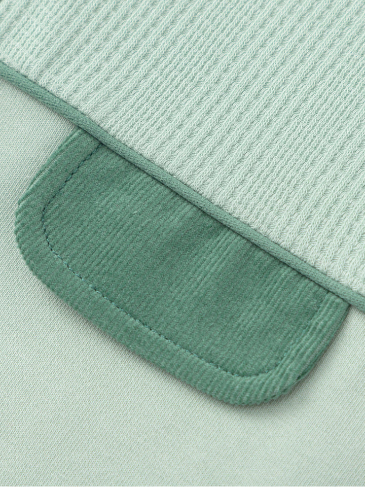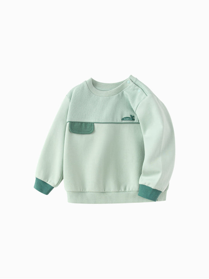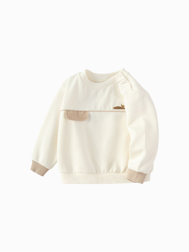 سويت شيرت عملي بأكمام طويلة مع أطراف مضلعة، يميزه جيب أمامي وتفاصيل قماشية بارزة. تصميم مريح وسهل التنسيق للاستخدام اليومي.