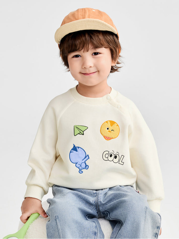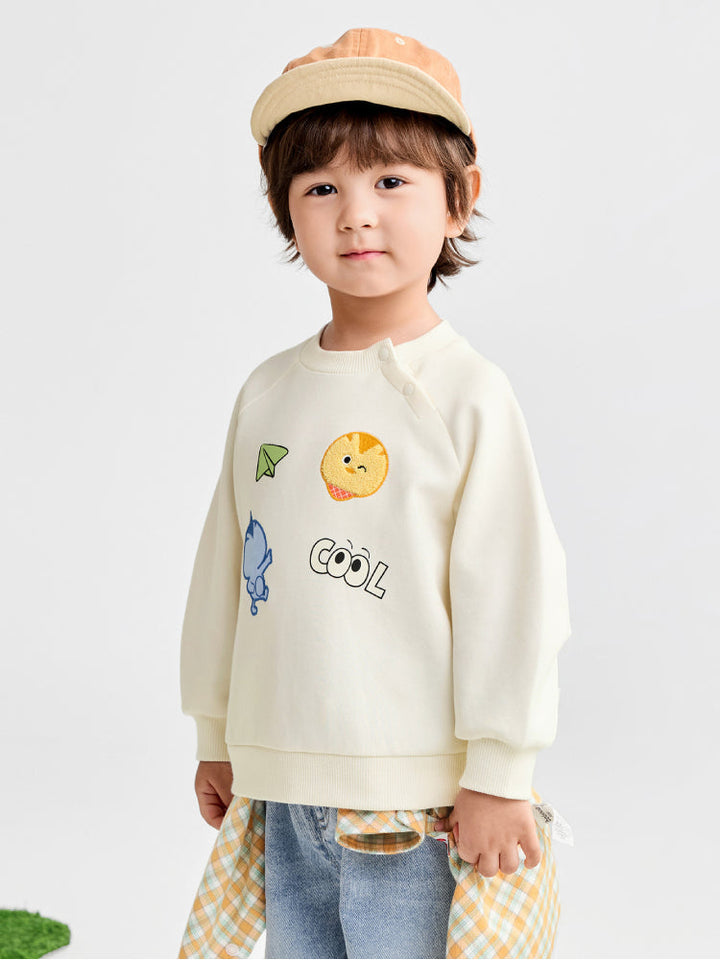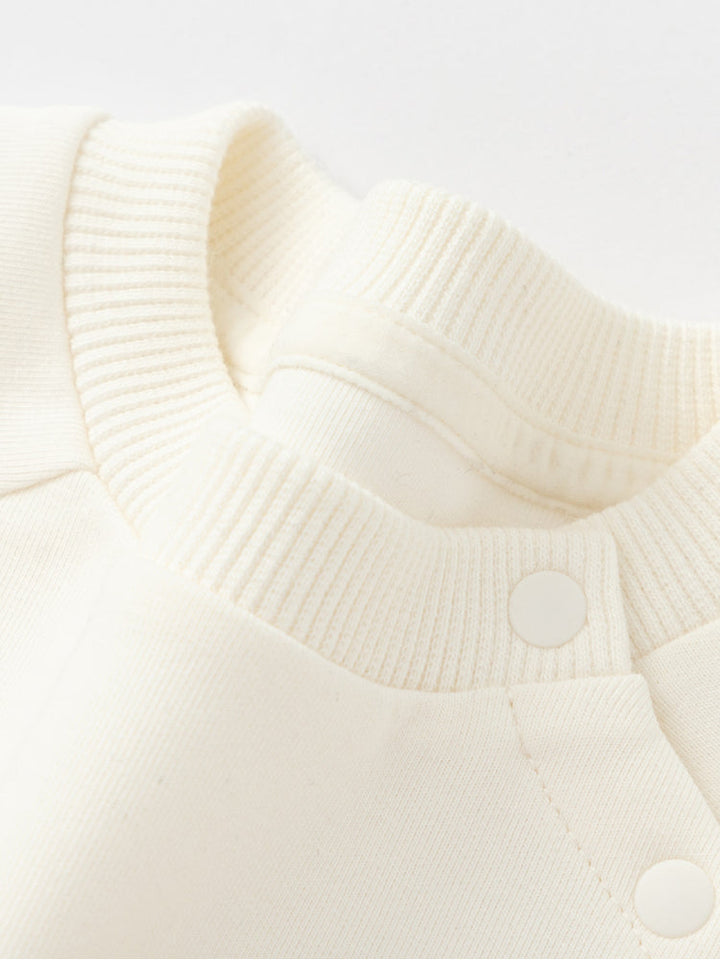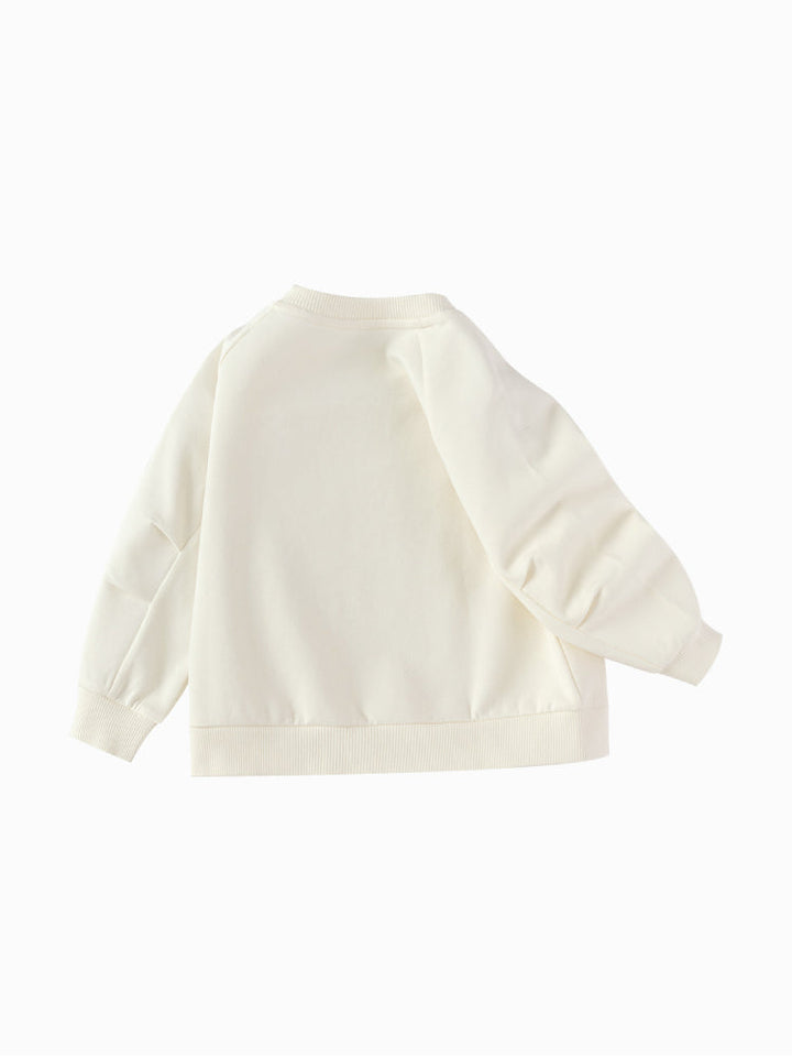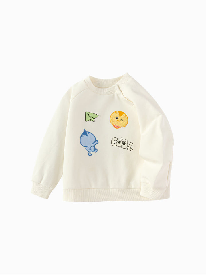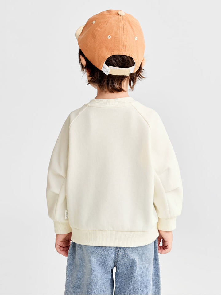 سويت شيرت عملي بأكمام طويلة مع أطراف مضلعة، يزينه تصميم مطبوع في الأمام لإطلالة مرحة. مثالي للراحة والاستخدام اليومي.