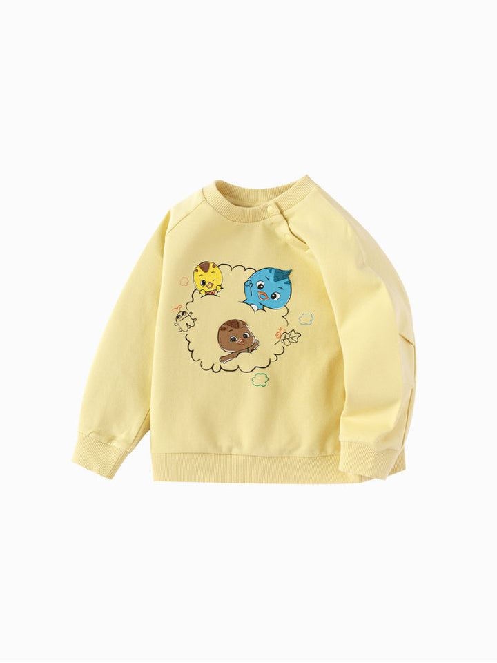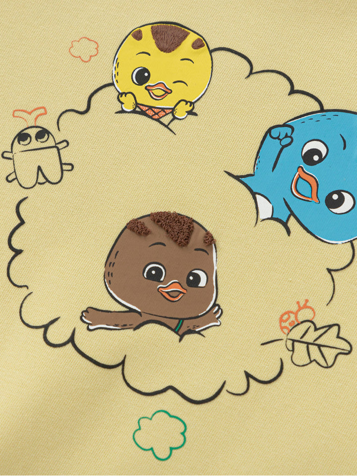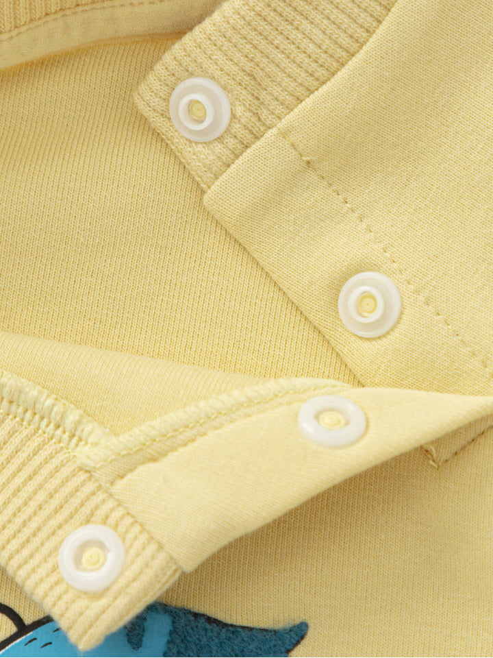 سويت شيرت عملي بأكمام طويلة مع أطراف مضلعة، يزينه تصميم مطبوع في الأمام لإطلالة مرحة. مثالي للراحة والاستخدام اليومي.