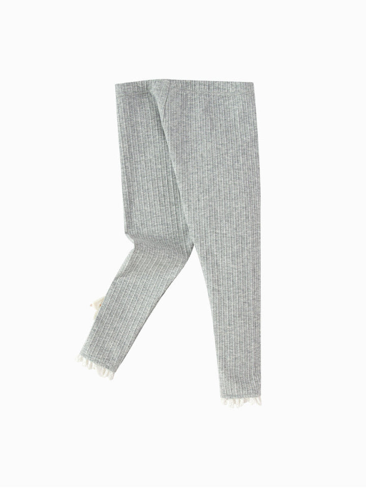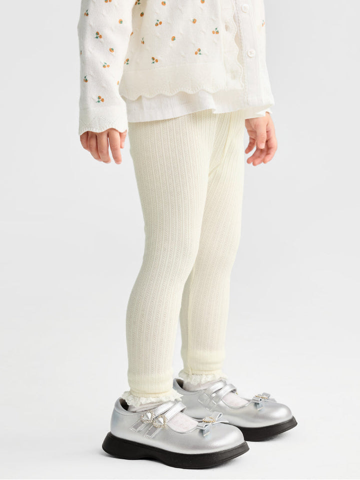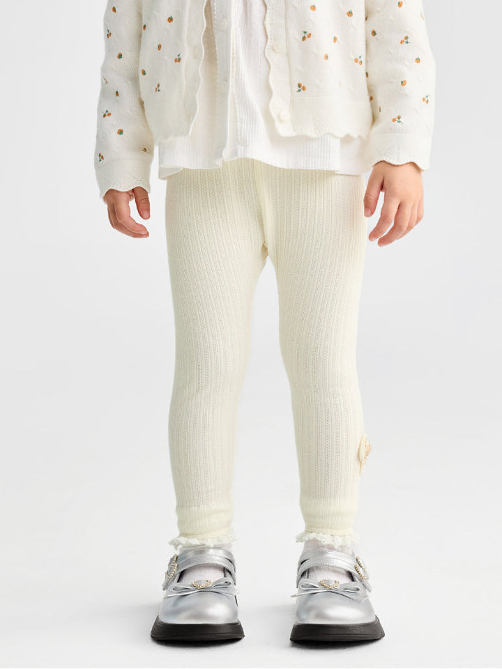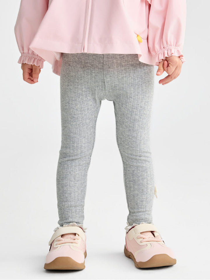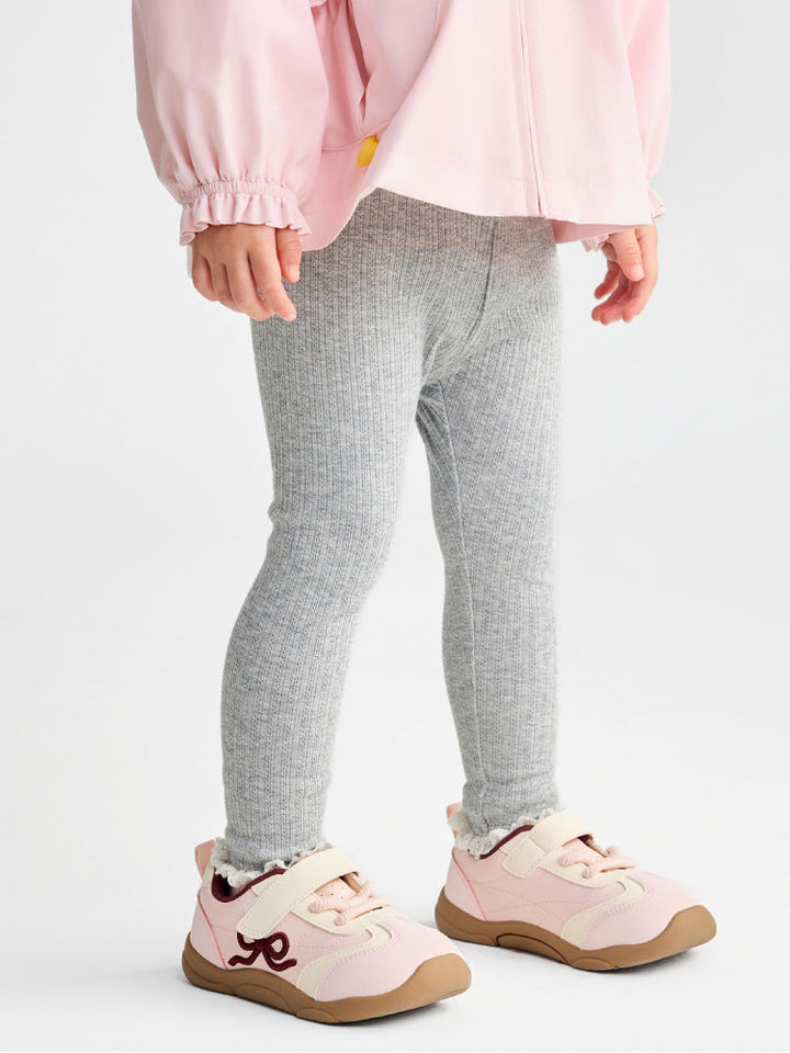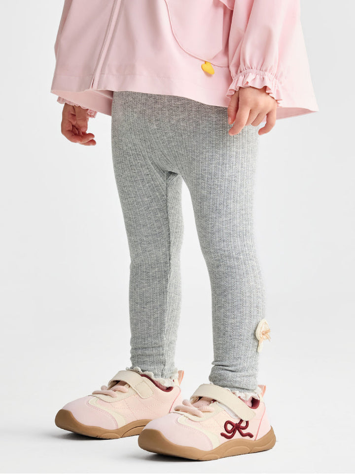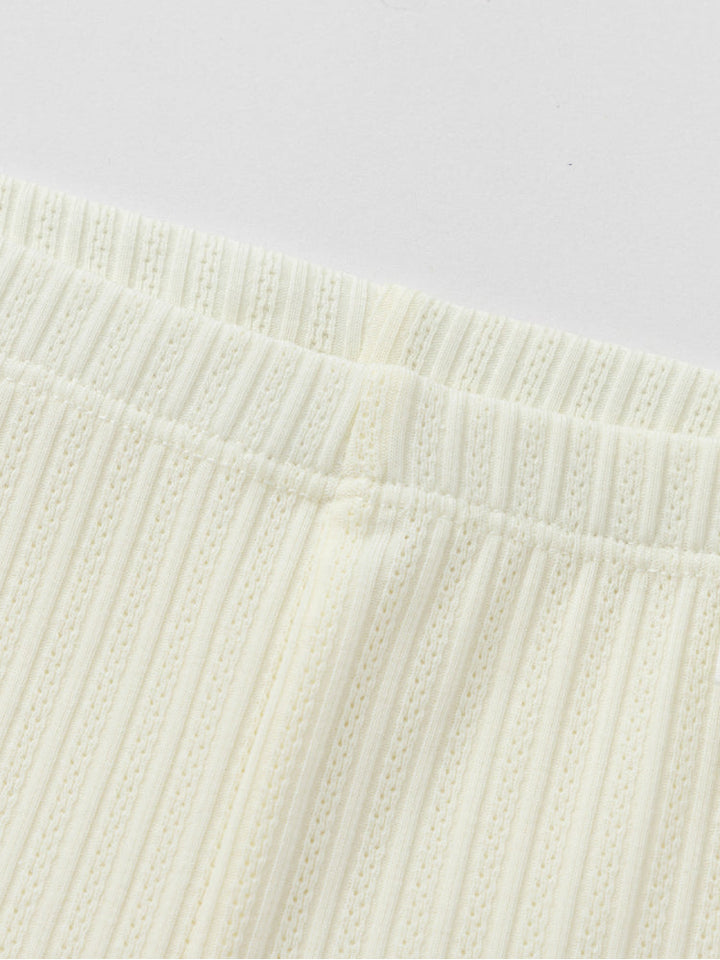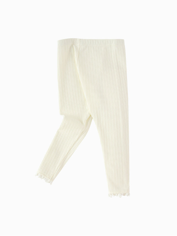 بنطلون ليقنز مضلع ناعم بخصر مطاطي مريح وتفصيل ربطة رقيقة عند الحافة.