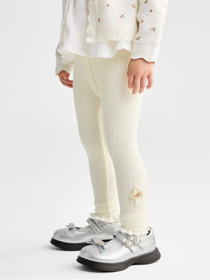 بنطلون ليقنز مضلع مع ربطة للبنات