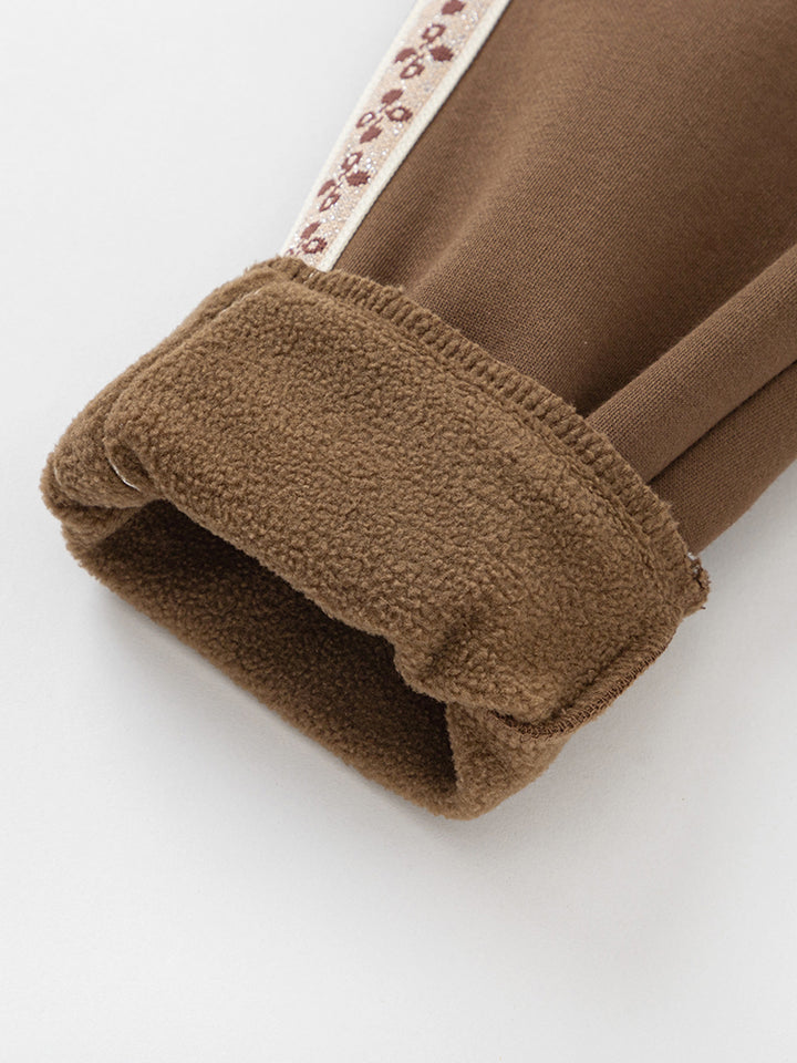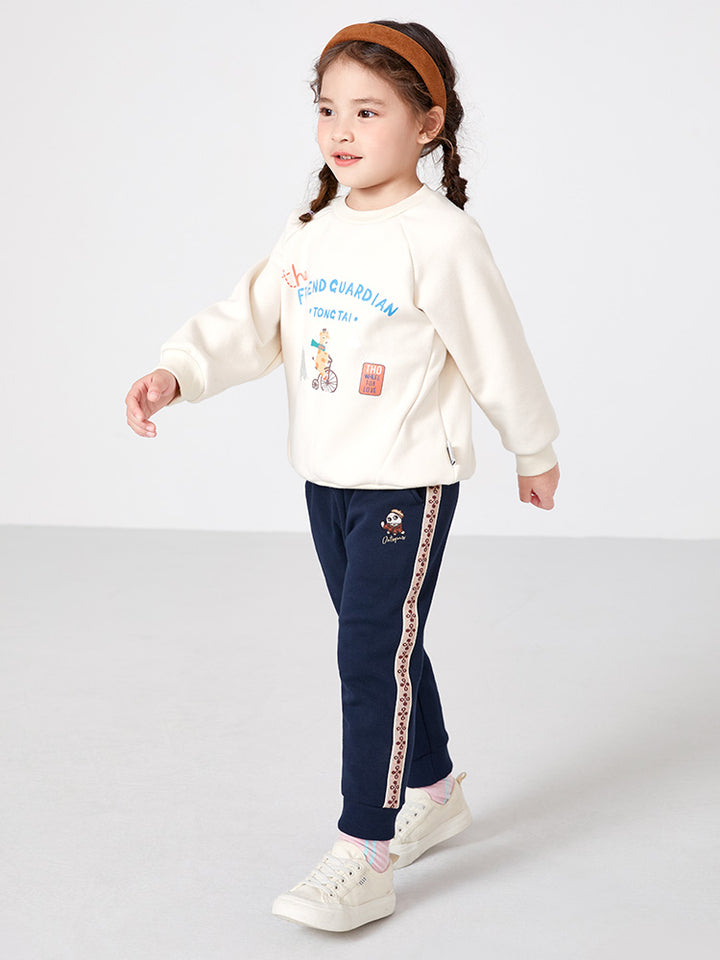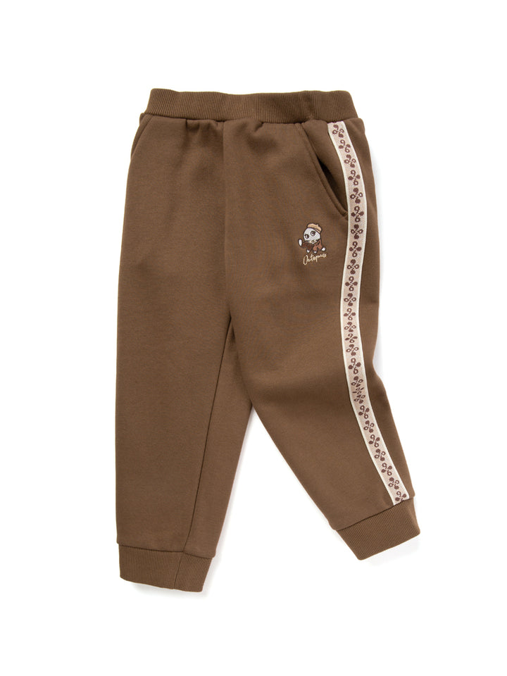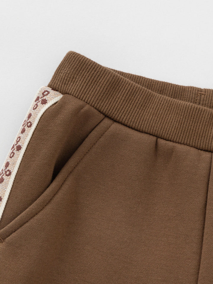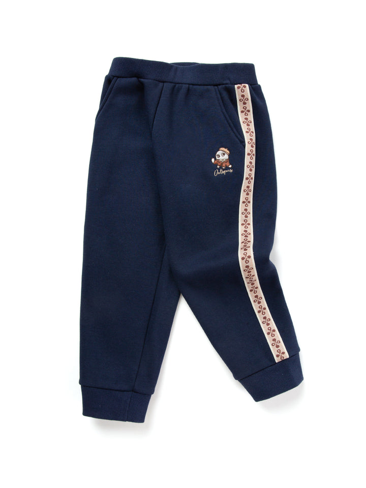 بنطلون رياضي بناتي، مزين بتفاصيل خطوط على جانب الساقين وتطريز صغيرة من الجهة الأمامية، يأتي بجيوب من الجهة الأمامية وبخصر مطاطي مريح